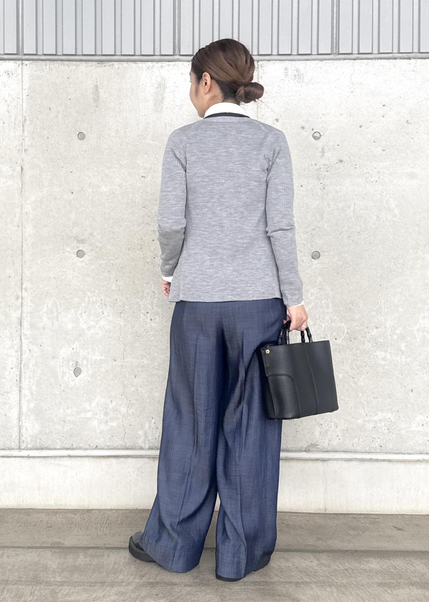 ラインは結構太めですが、落ち感のある素材なのでボリュームが出過ぎることなくスッキリと着用できました! -