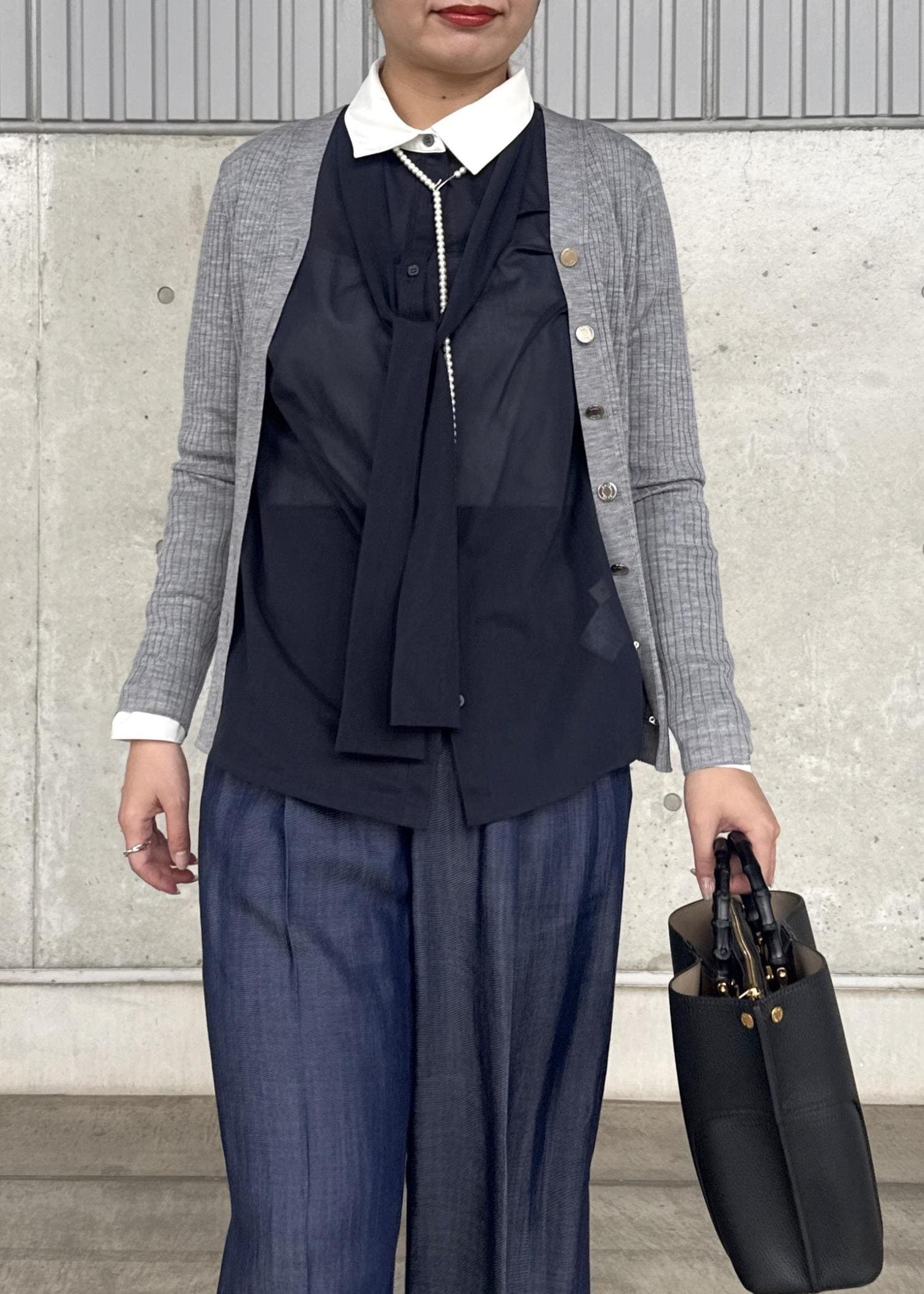 ニットカーディガンのインナーに合わせると