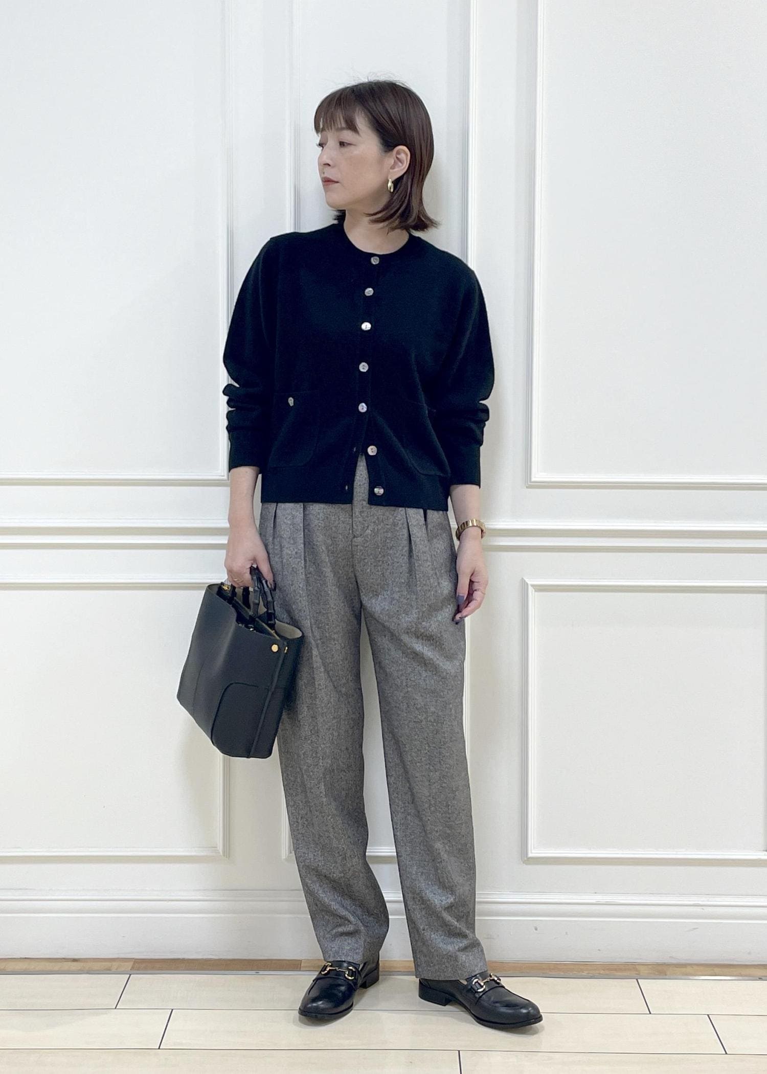 ROPÉ【一部WEB限定】ウールカシミヤ ブレンドニットカーディガン/イージーケアブラック / F¥27,500レビューFサイズ着用。