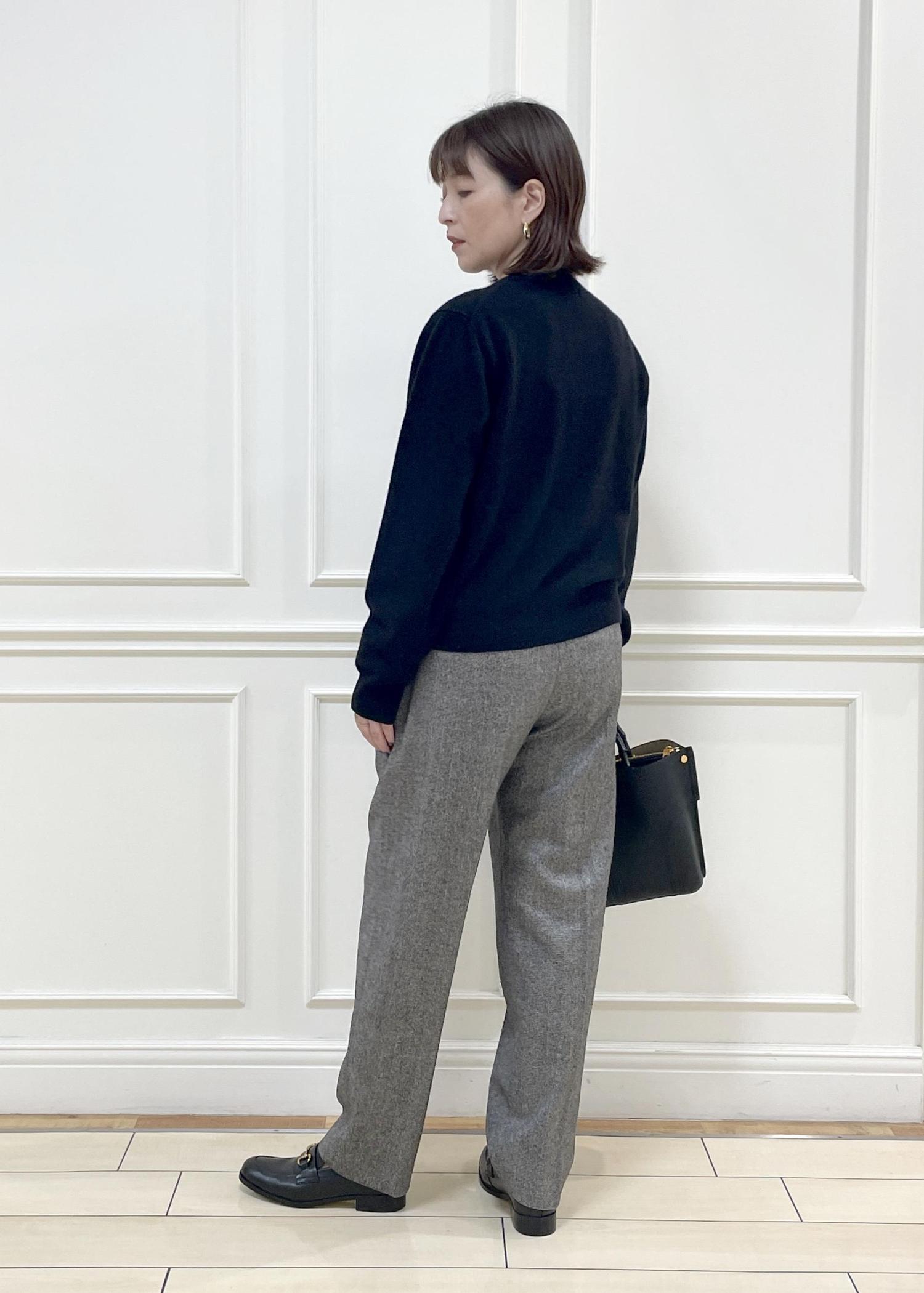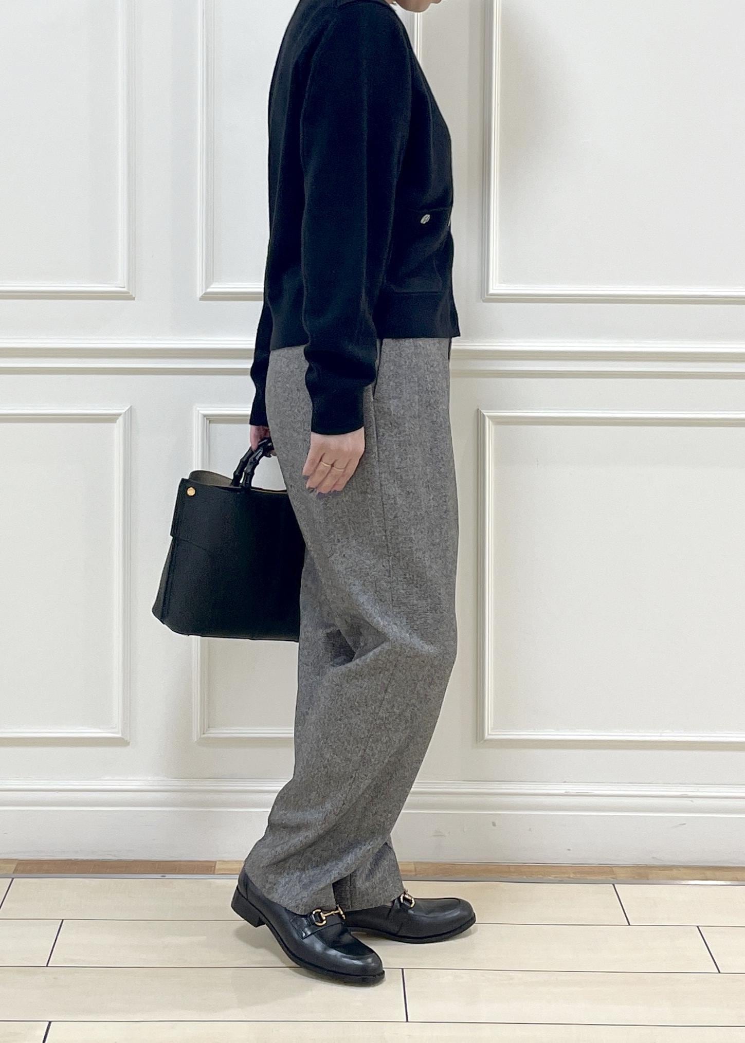 ROPÉウールレーヨンクラシック2タックパンツ(ヘリンボーン/グレンチェック)/セットアップ対応ブラック系 / 36¥27,500レビュー身長156cm、36size着用。
