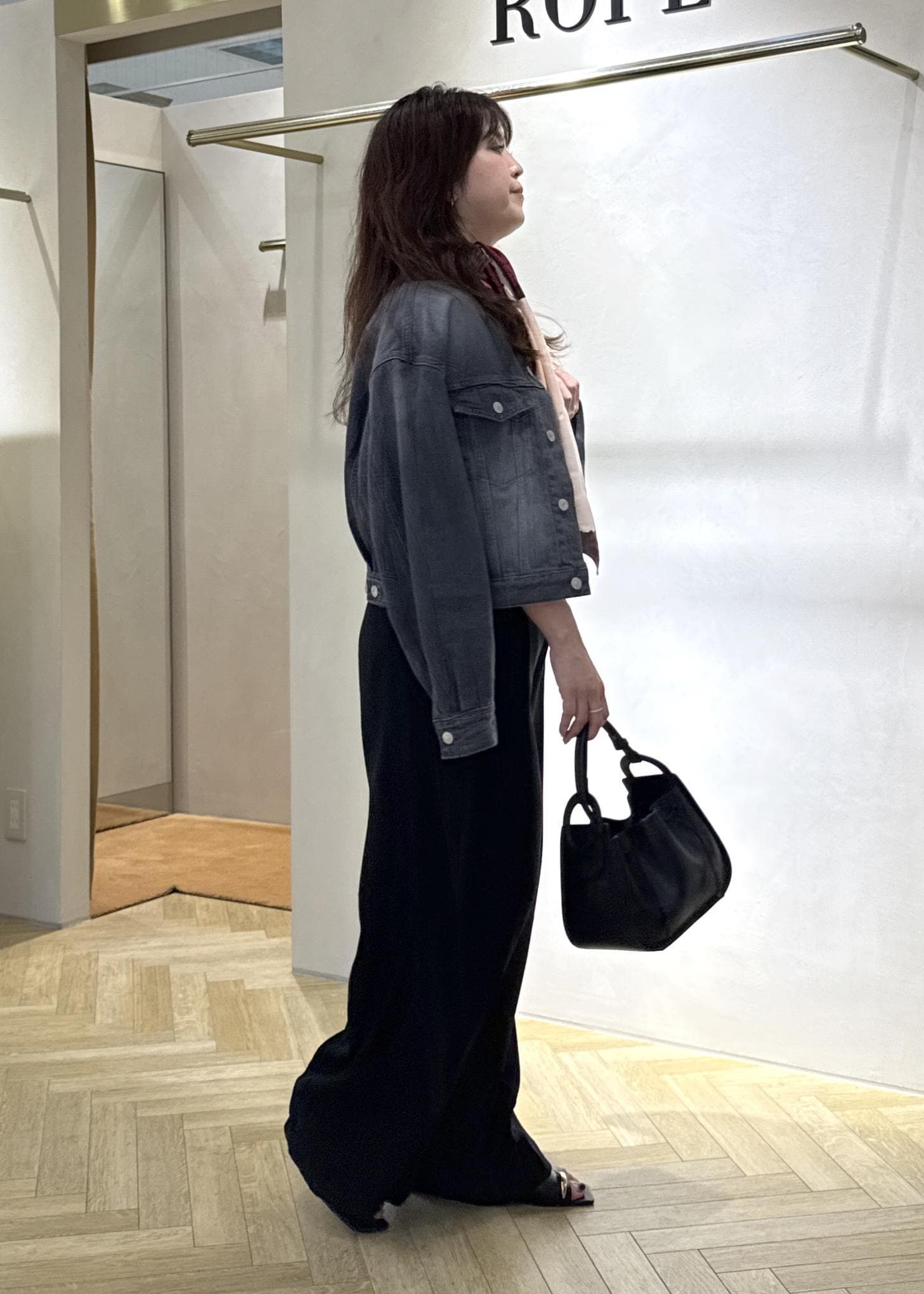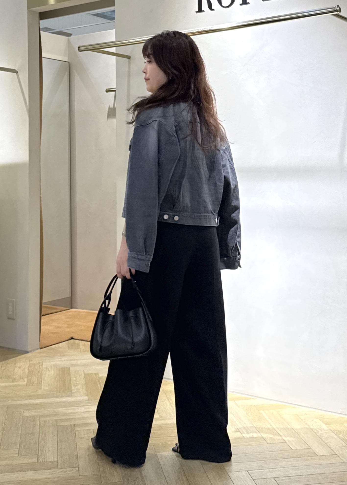 Gジャンはカジュアルになりやすいですがそこはロペらしくノーカラーのコンパクトなデザインと落ち着いたカラーチョイスで綺麗め、フェミニンな方でも着やすい仕様。