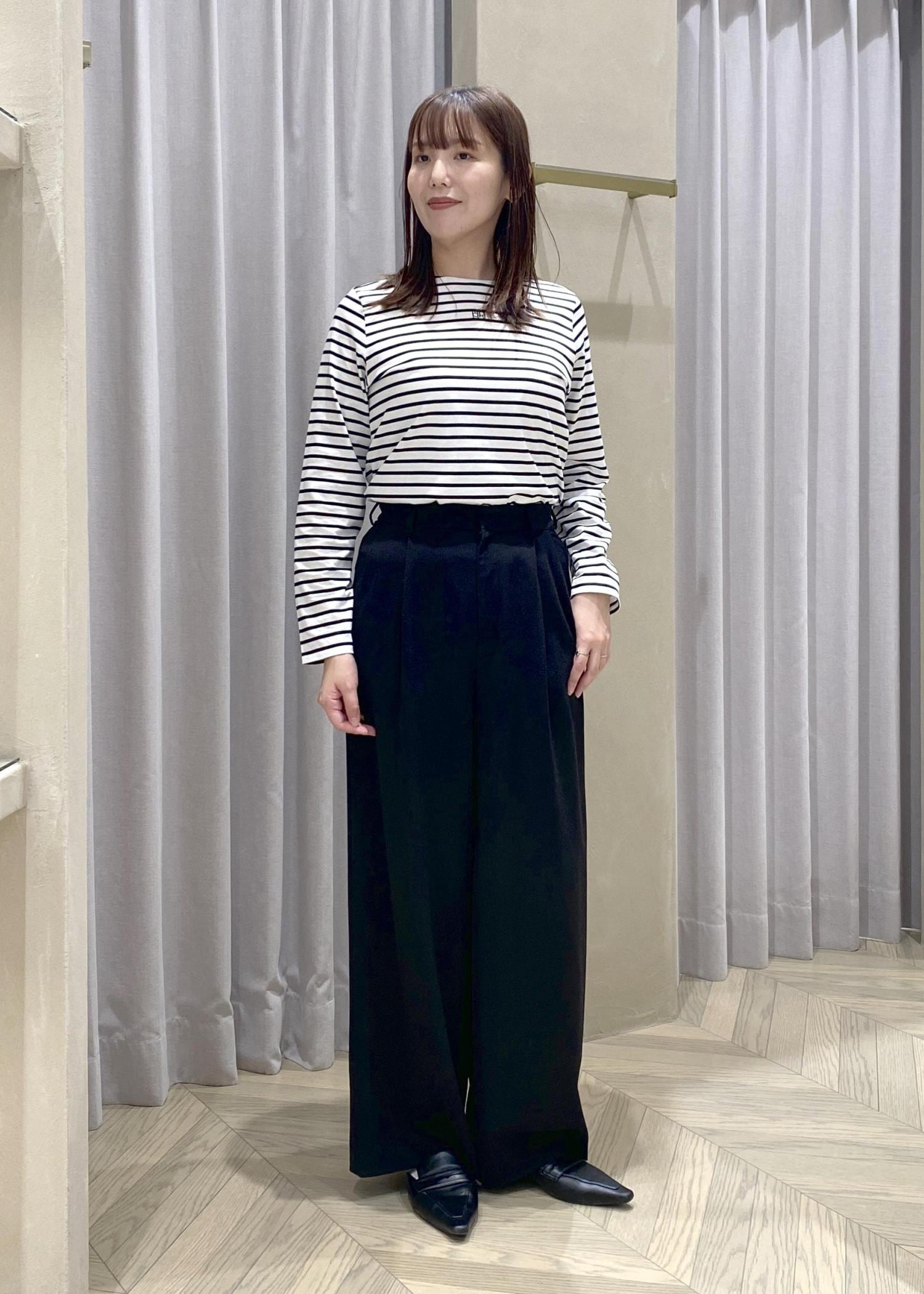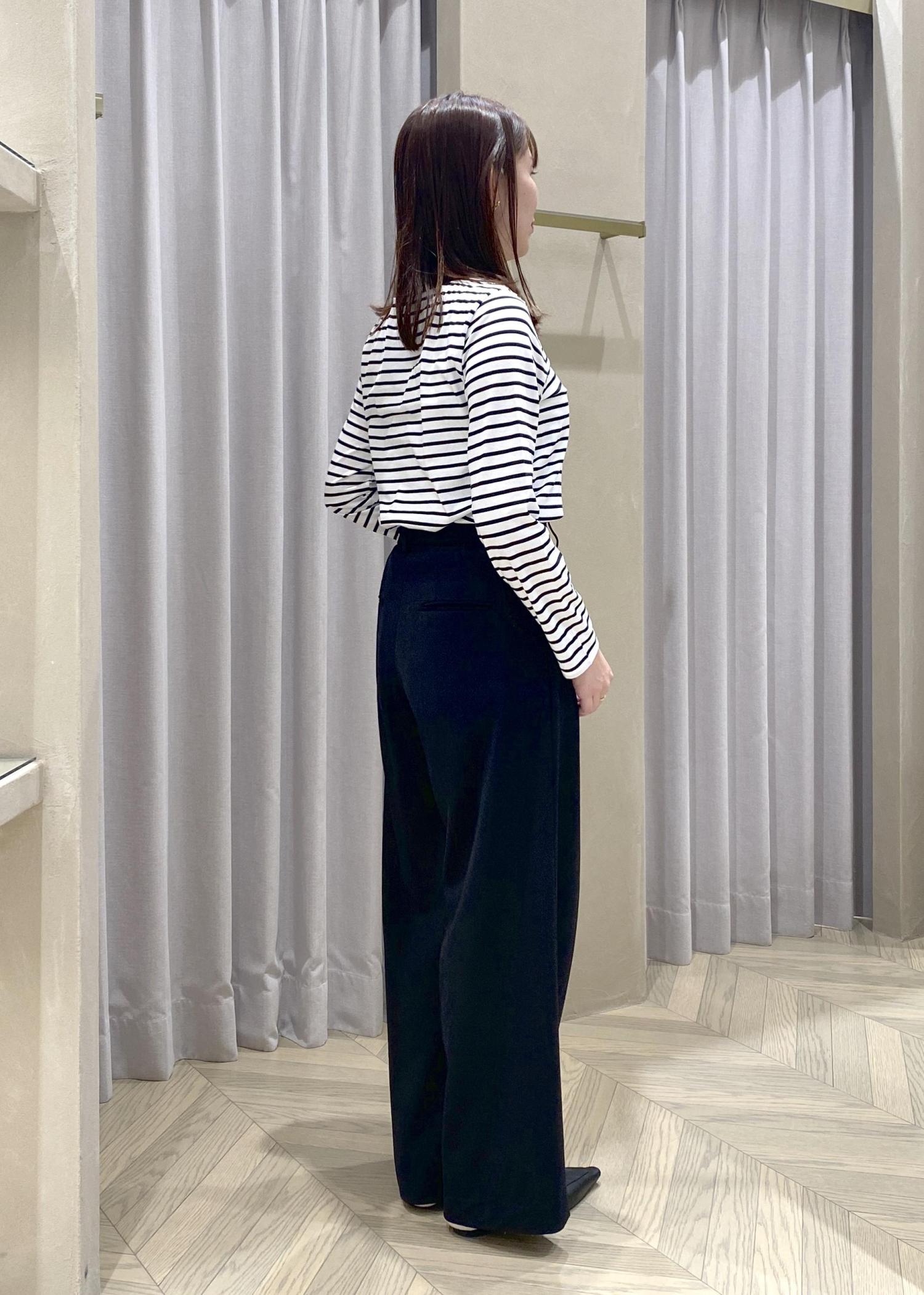 センタープレスが入っているのでワイドなシルエットですがボリューム感が出過ぎず、生地の柔らかさもあるので程よくスッキリとしたシルエットになっています。