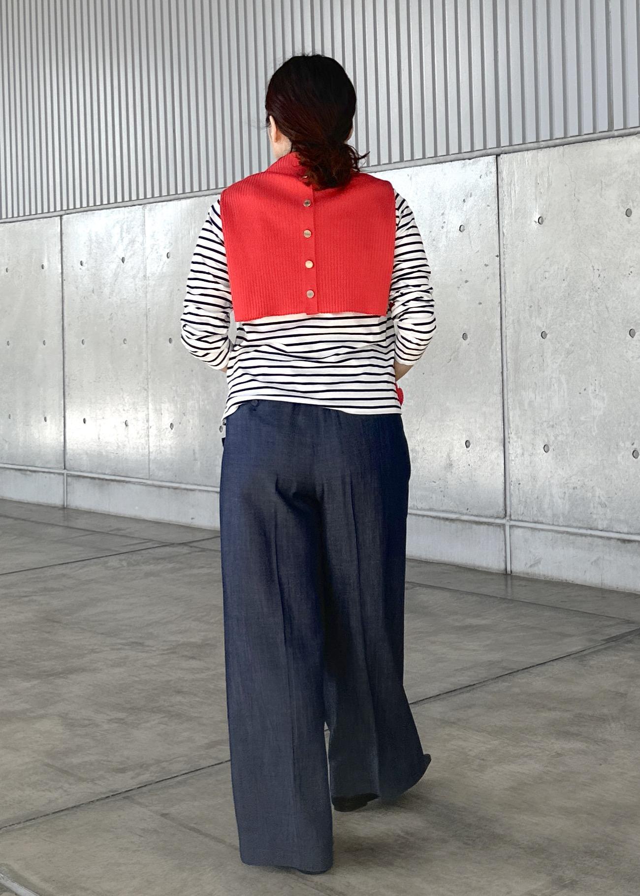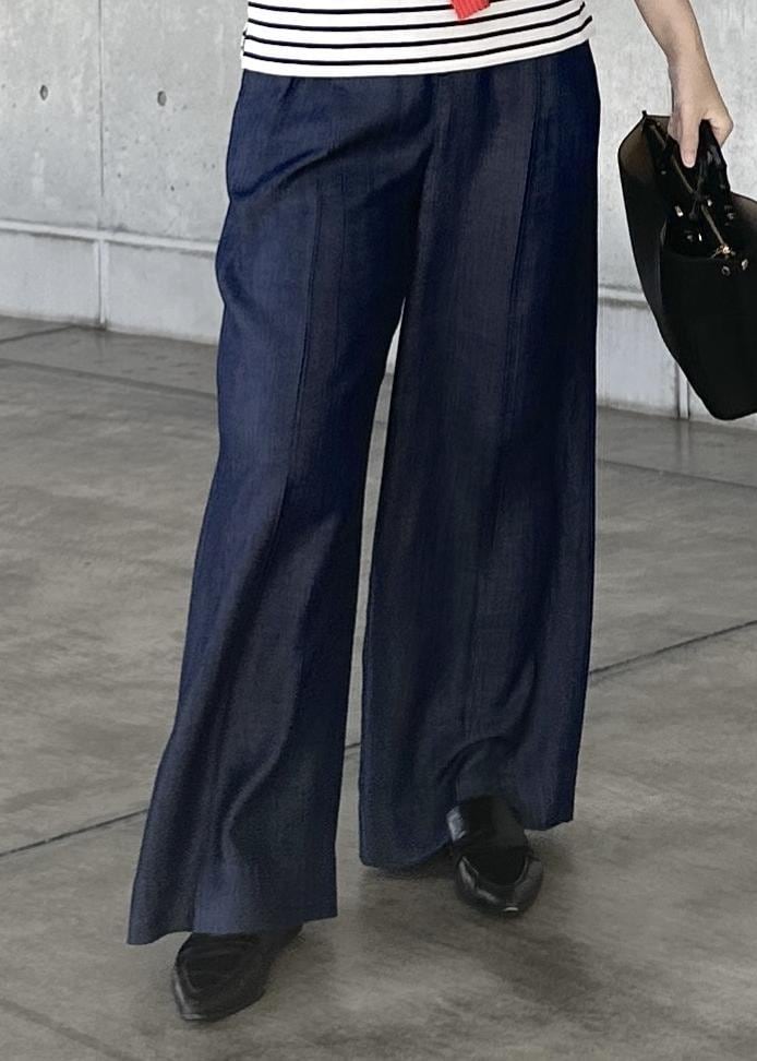 落ち感のあるテンセル100%素材のデニム。軽さと程よいツヤ感があり、カジュアルになりすぎずきれいめにも着用できます。ウエストゴムで楽してきちんと見えするので毎日履きたくなるような、ストレスフリーな1本です。 -