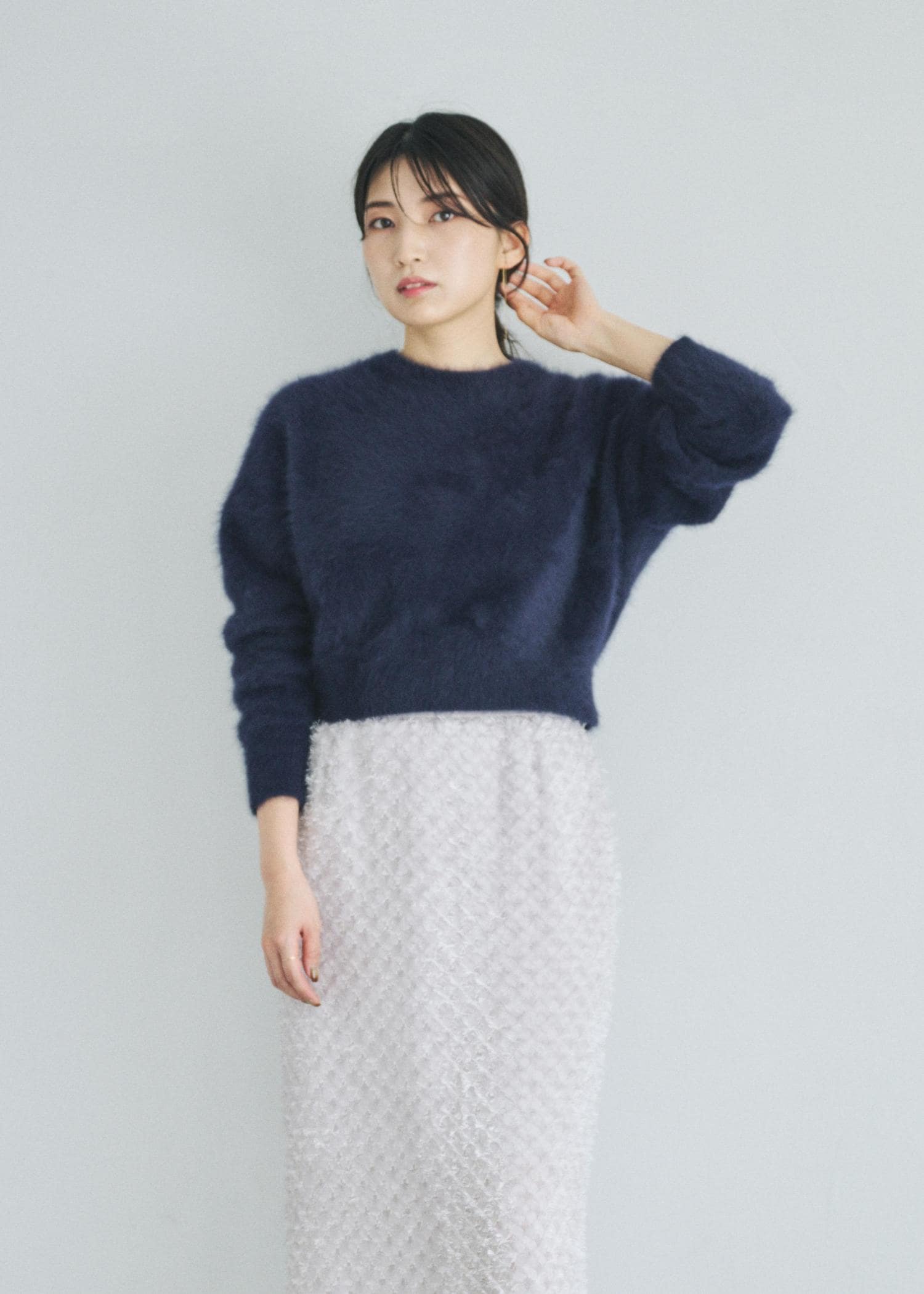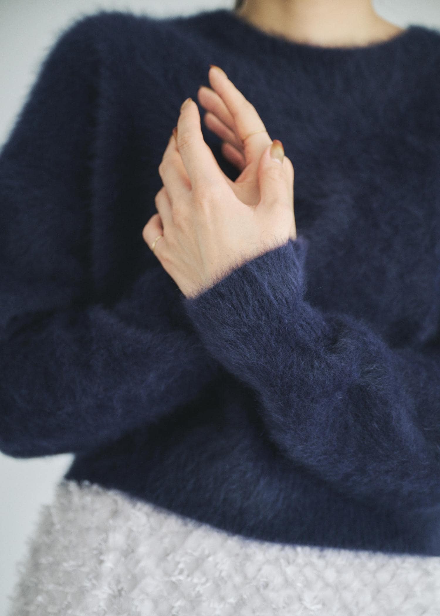 毛足が少し長めで、ふわふわととても気持ち良い手触りのフォックスカシミヤニット。