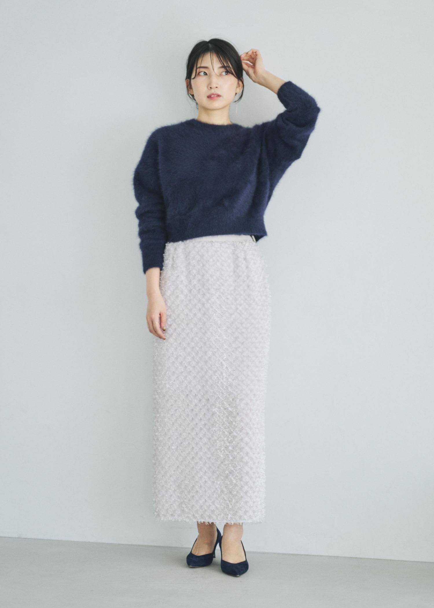 ふわニット×ツイードでつくる、冬の上品スタイル。