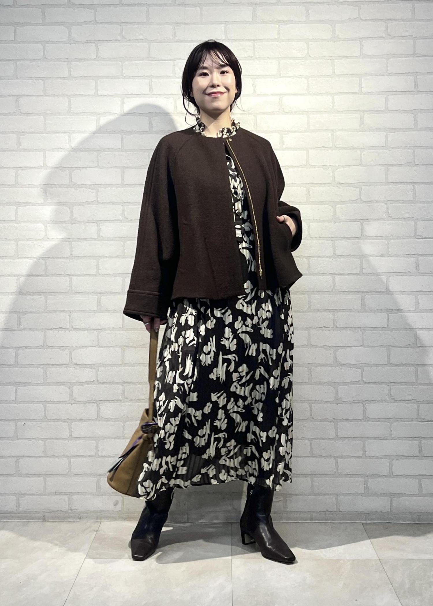 春夏のものと比べるとしっかりとした生地感で、厚みを感じます。ウール素材が暖かいので、冬もタイツを合わせて着用出来そうです。