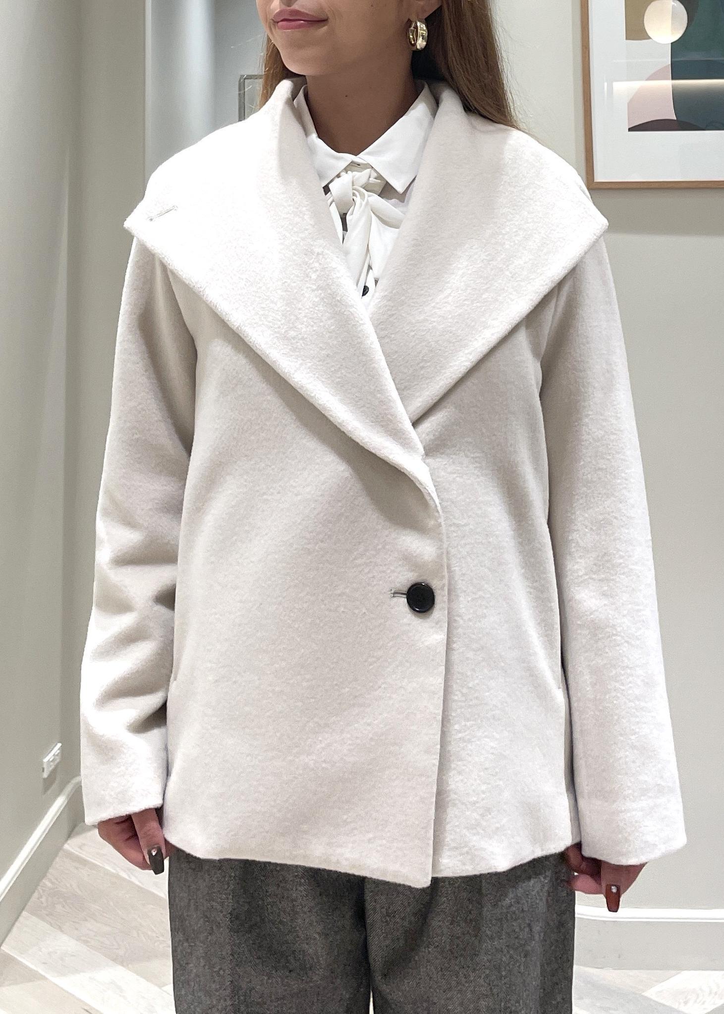 新作のショートコートは、ウールとカシミヤの