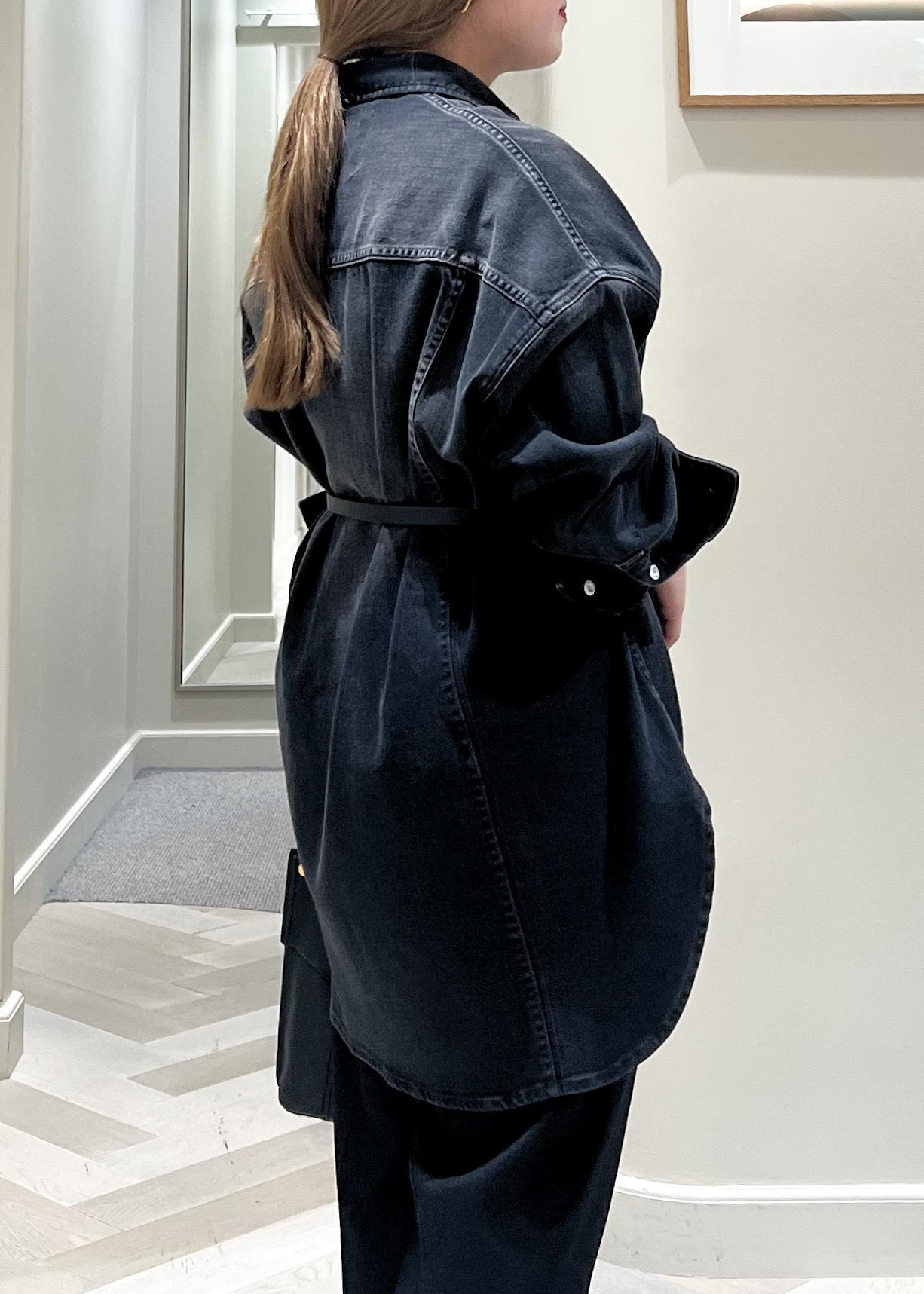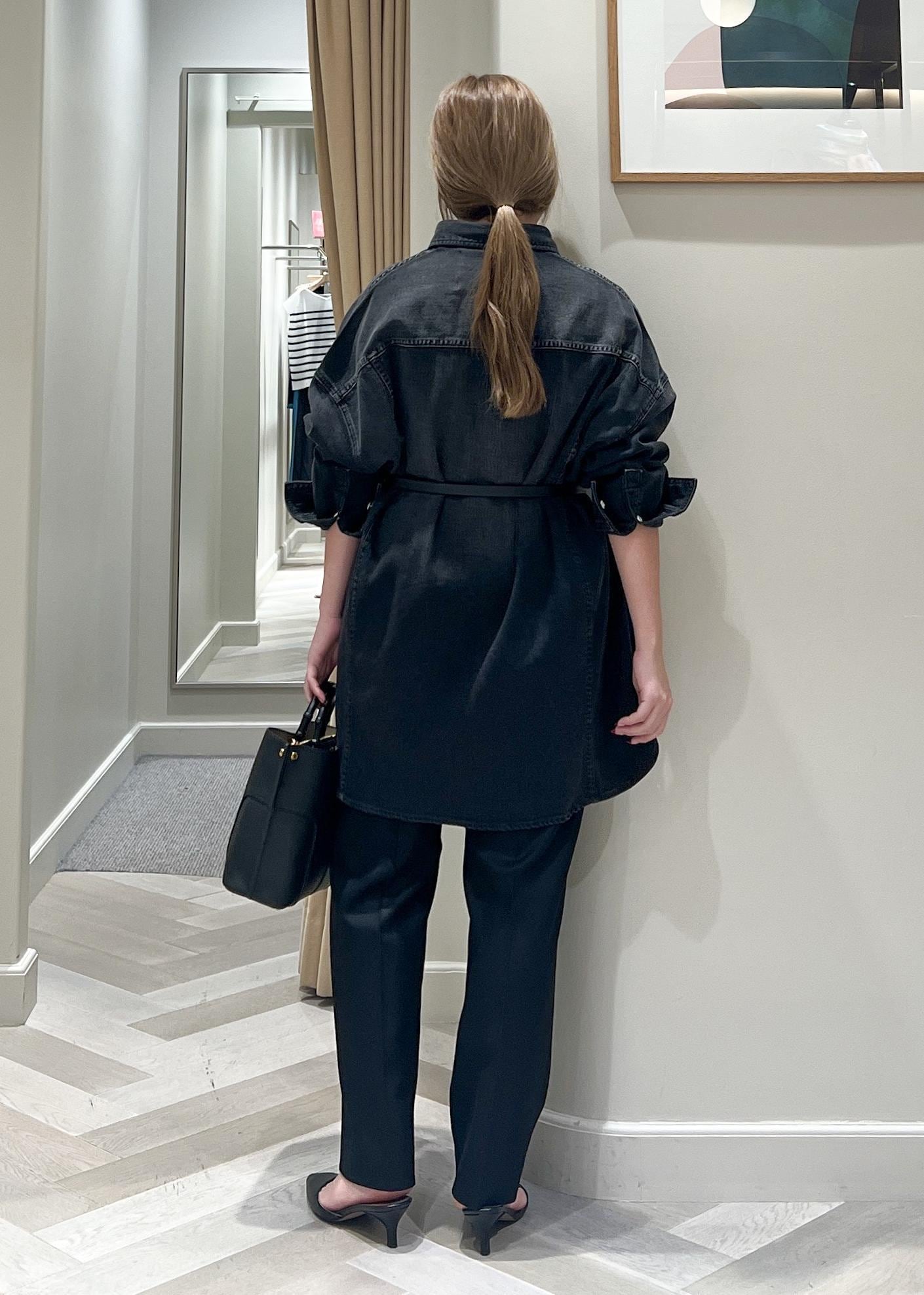 ヒップが全て隠れる着丈で、デニムなのに