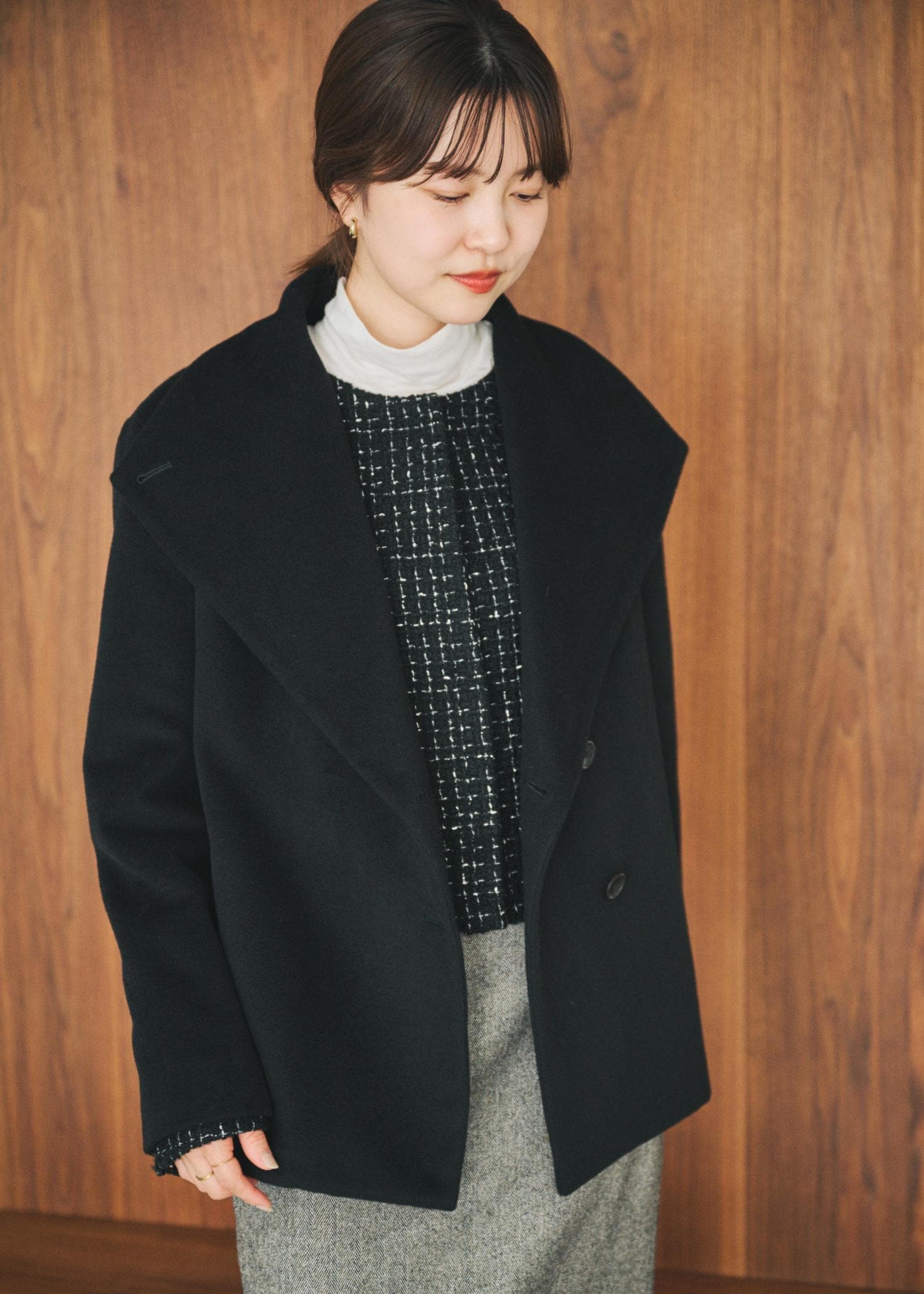 NEW!ROPÉプレミアムカシミヤ ショートコート【25AW】ブラック / 38¥53,900レビュー160cm、38サイズ着用。