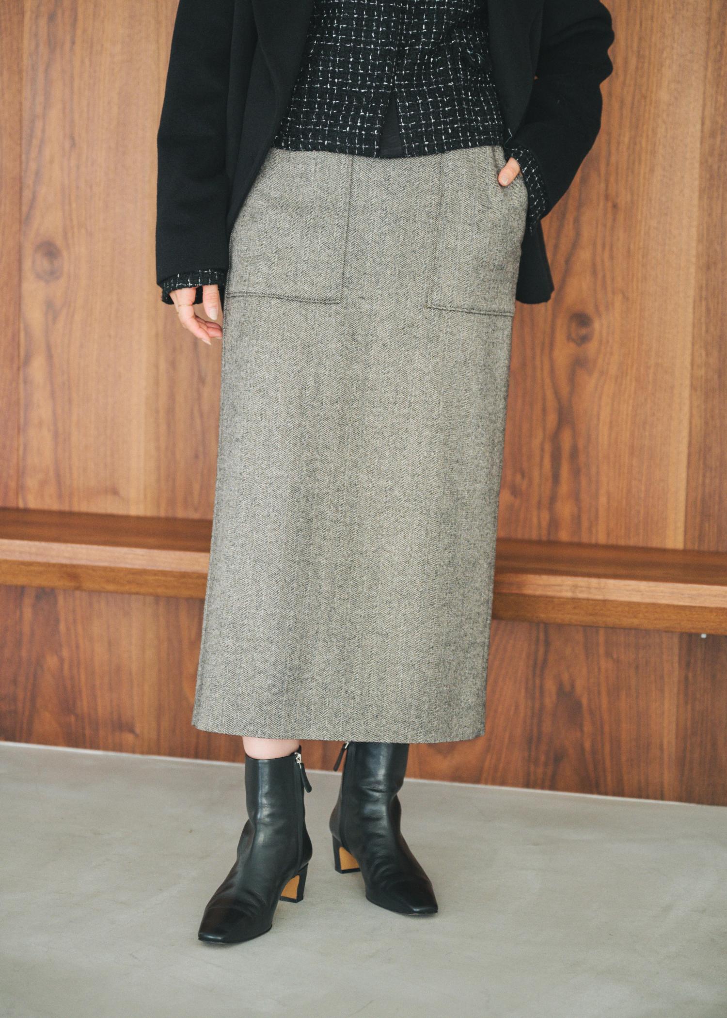NEW!ROPÉ[美人スカート]ウールレーヨンポケット付きタイトスカート(ヘリンボーン/グレンチェック)/セットアップ対応ブラック系 / 38¥25,300レビューウール混でやや厚みのある素材です。