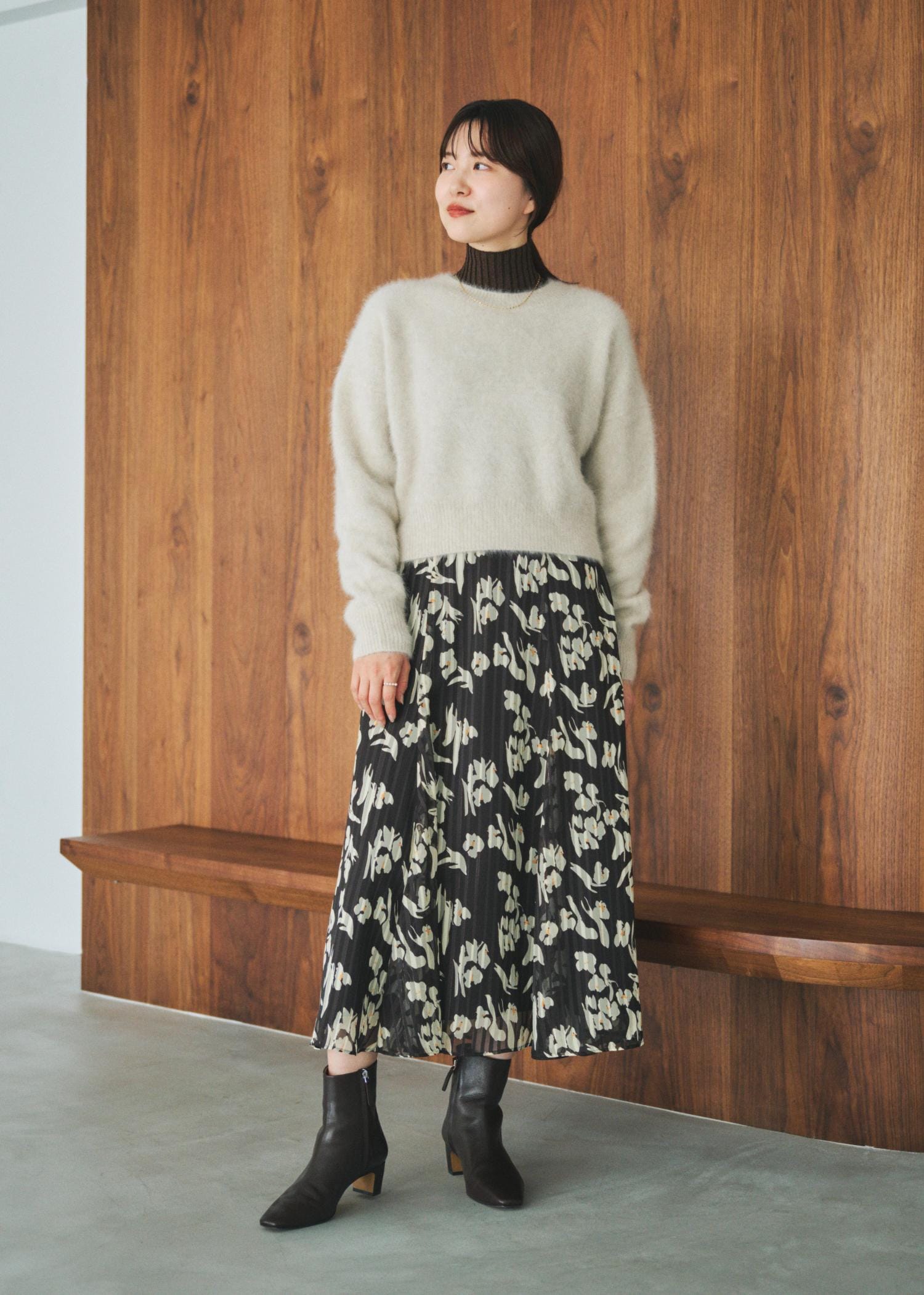 ROPÉフラワープリントマーメイドスカートダークブラウン系 / 38¥25,300レビュー身長160cm、38サイズ着用。