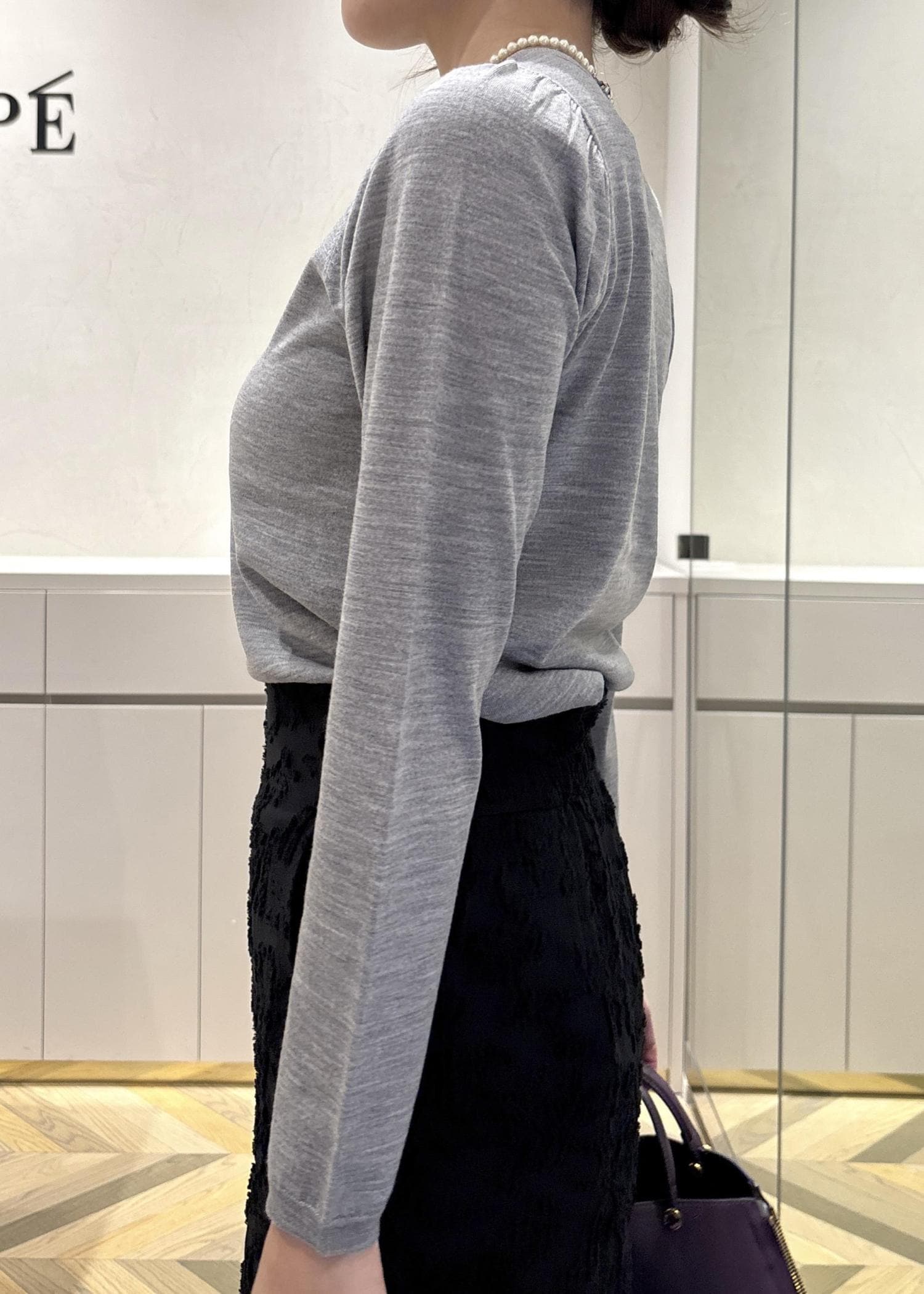 ROPÉ袖ギャザークルーネックニットプルオーバー/イージーケアグレー / F¥19,800レビュー肩のギャザーがポイントのシンプルなニット。