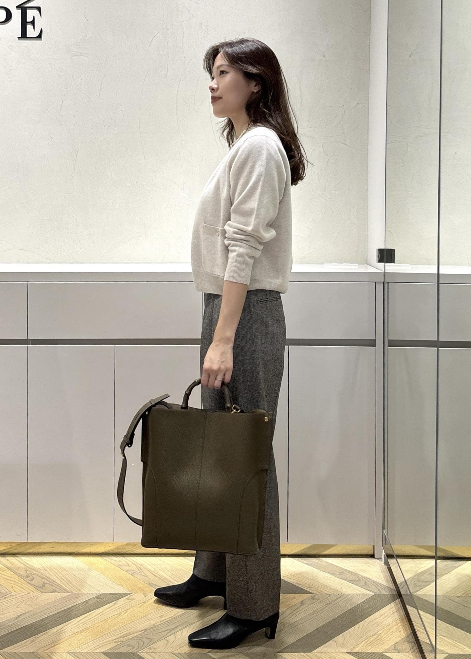 ROPÉ【E'POR】BAMBOO BAG Large【通勤】【A4対応】【25AW】カーキ / F¥19,800レビューA4サイズ収納可能。シボ感のある合皮素材できれいめ〜カジュアルなスタイリングまで幅広く馴染みます。中央にチャック付きの仕切りがあり、チャックを開けると内側に小さいポケットが3つあり。両サイドにも収納可能。