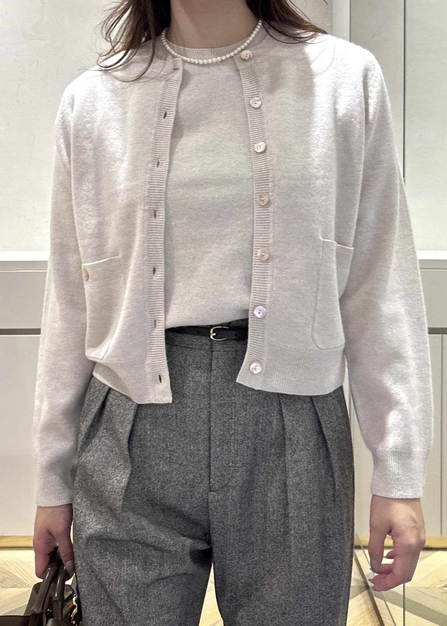 ROPÉ【一部WEB限定】ウールカシミヤ ブレンドニットカーディガン/イージーケアベージュ系 / F¥27,500レビューウール×カシミヤの柔らかさと軽さが魅力。素肌に着用してもチクチク感は無く、保温性が高いので暖かく感じました。全体のサイズ感はジャスト〜ややゆとりあり、着丈は私の身長で腰骨あたり。手洗い可能です。
