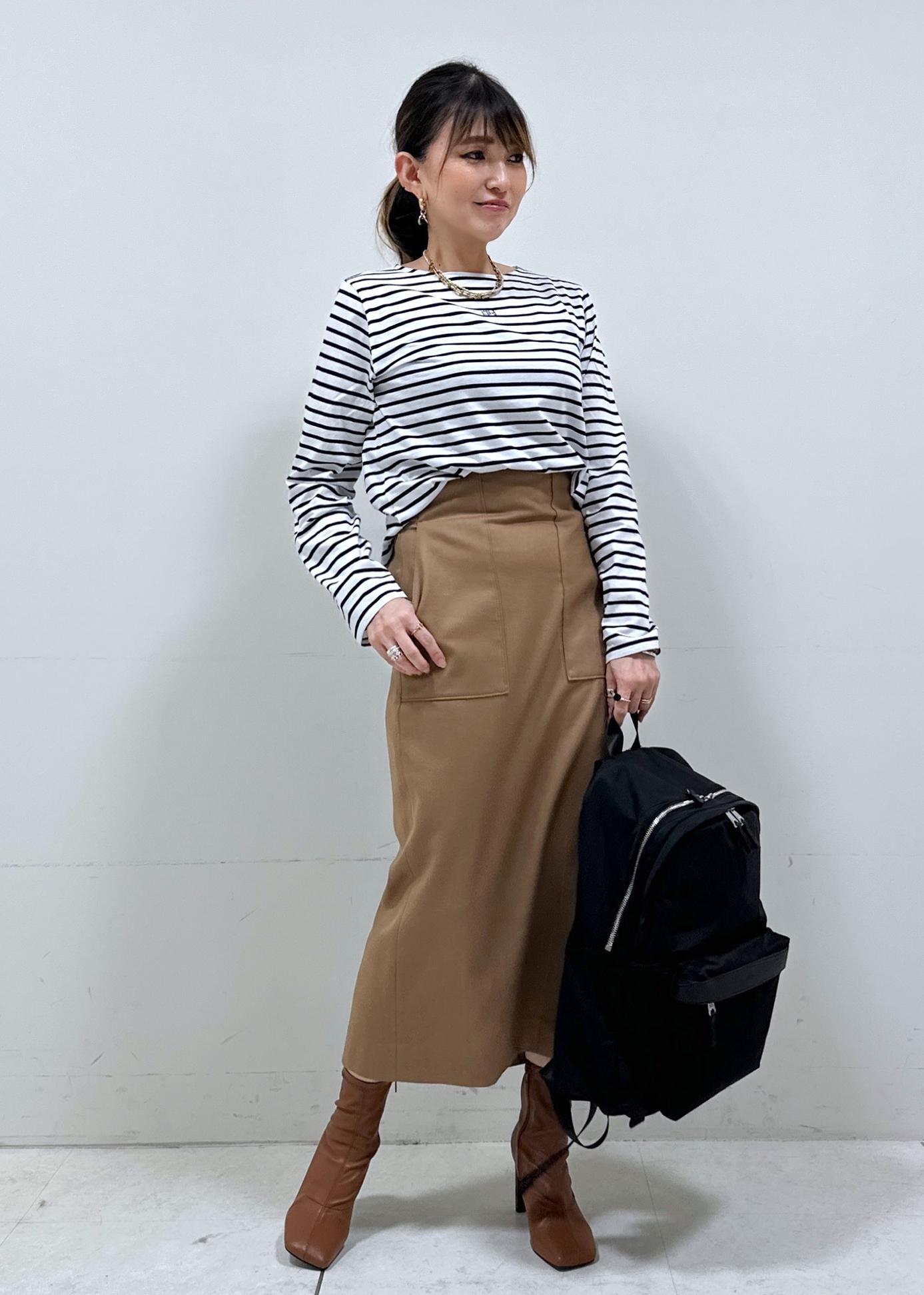 オンオフどちらにも変えられるコーデなので、お仕事シーンからオフスタイルにも早替わり出来、マルチに使えるコーデです。
