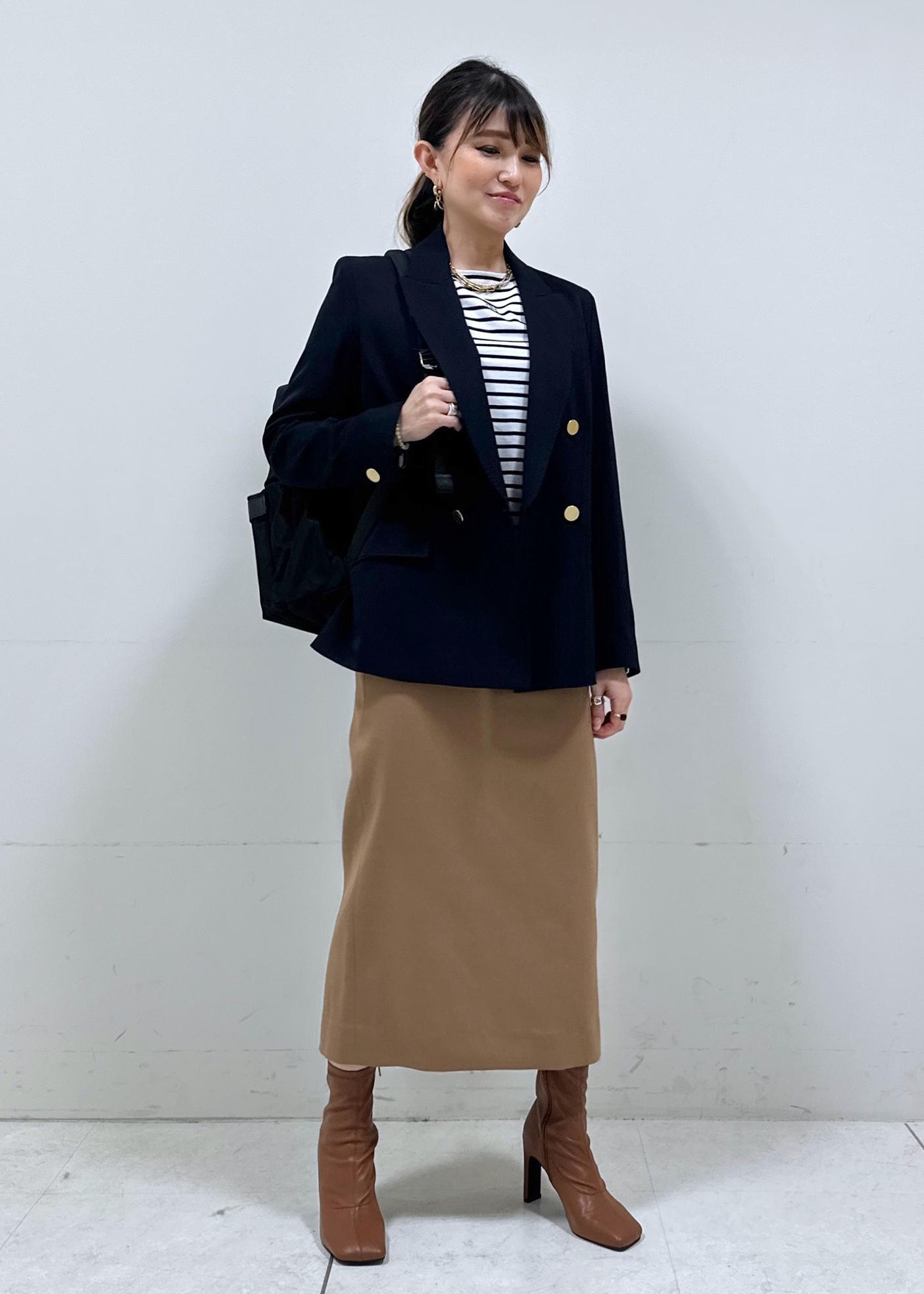 ジャケットを脱ぐと、結構カジュアルなスタイリングですが、ジャケットをプラスする事で少し格上げしたコーデにしました!