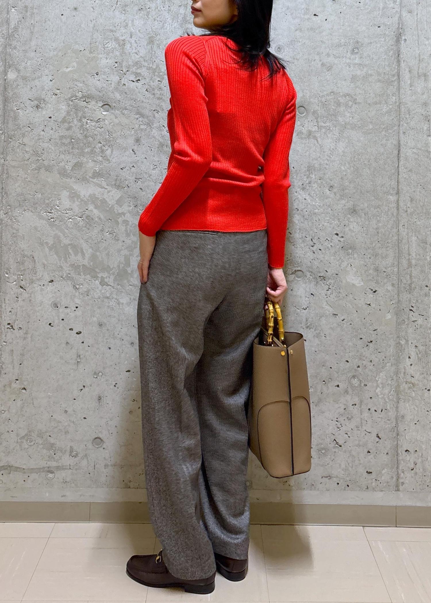 ややラインは拾いますが、窮屈感なく細くすっきりと見せてくれる柔らかいリブ素材です。
