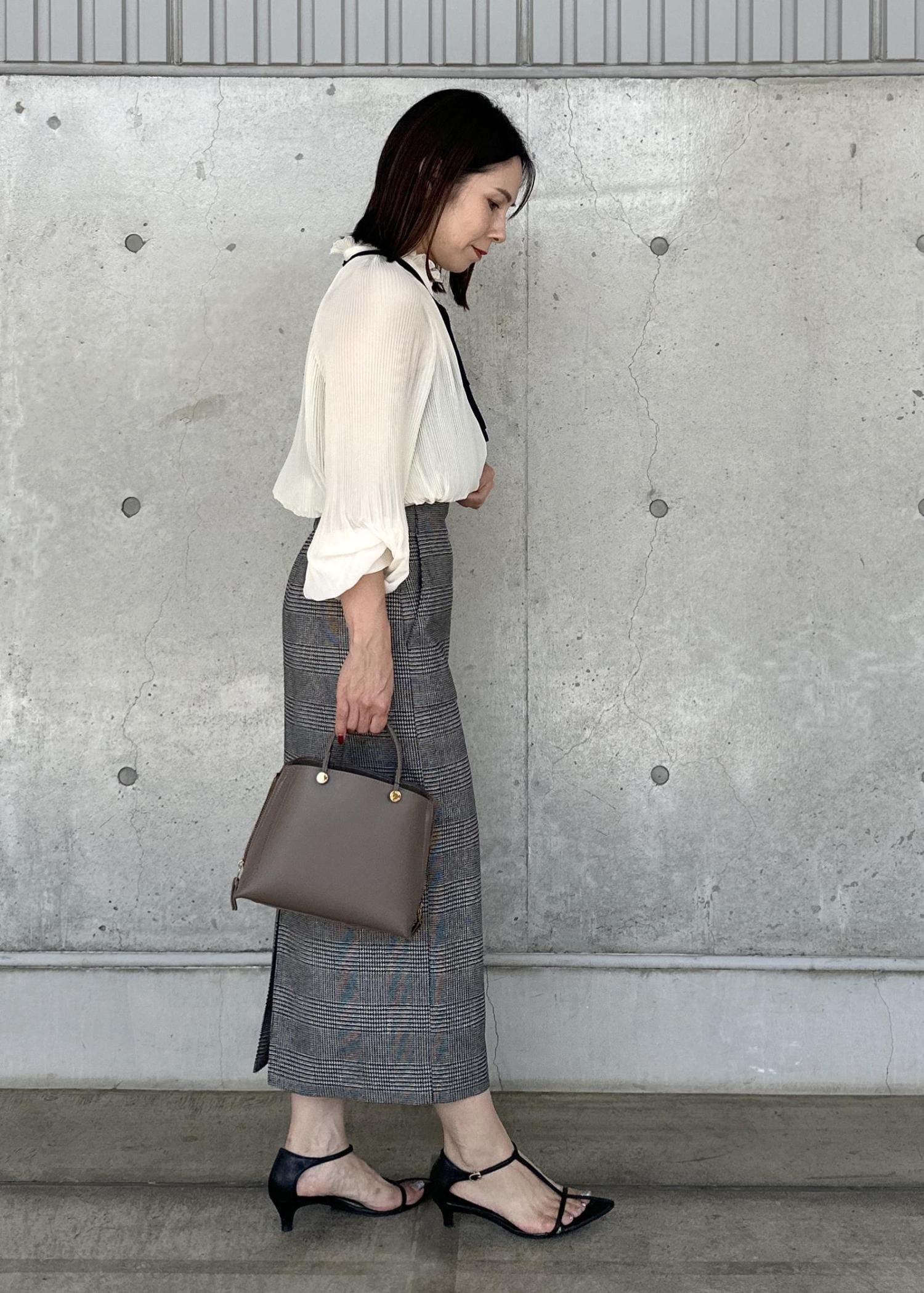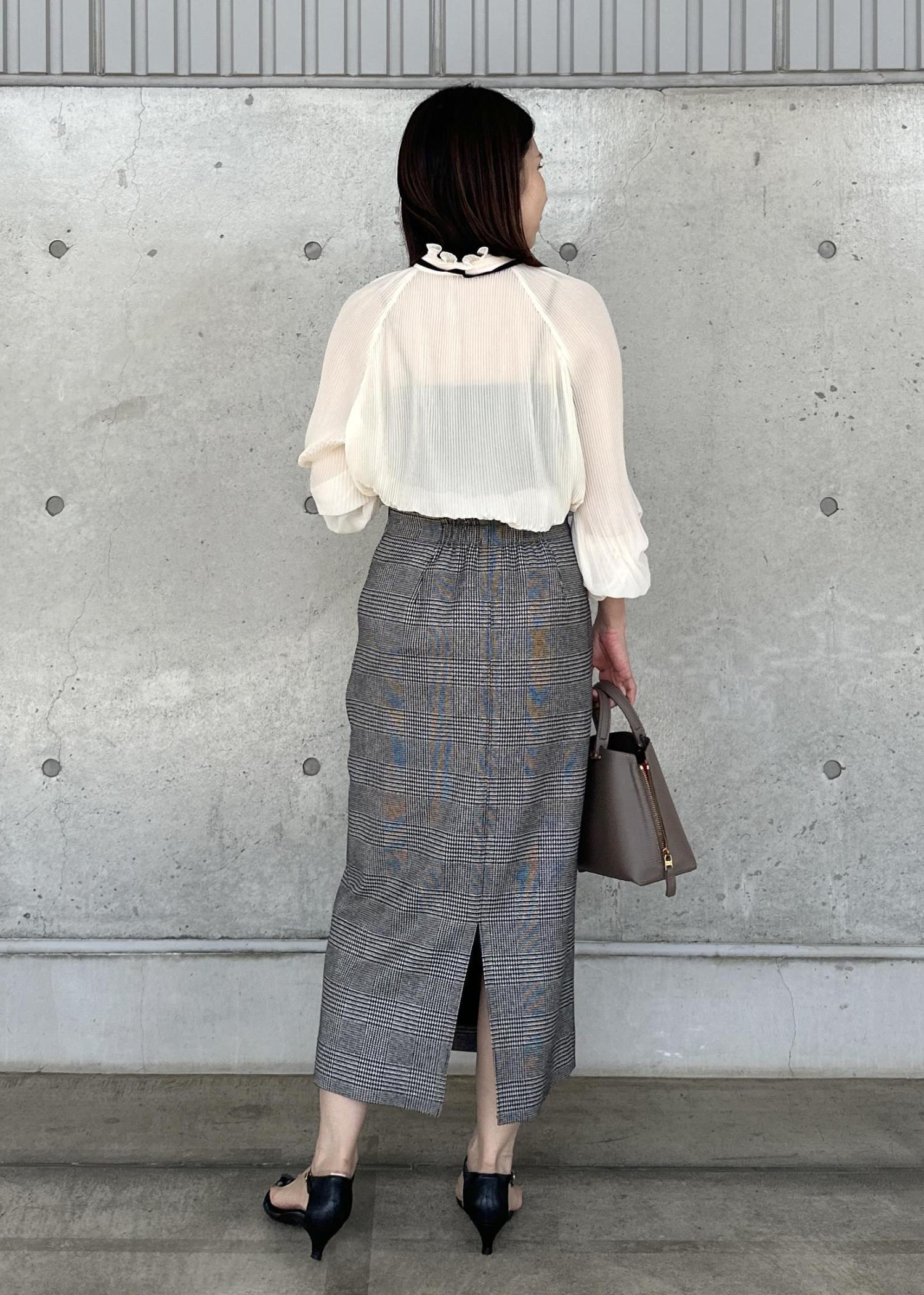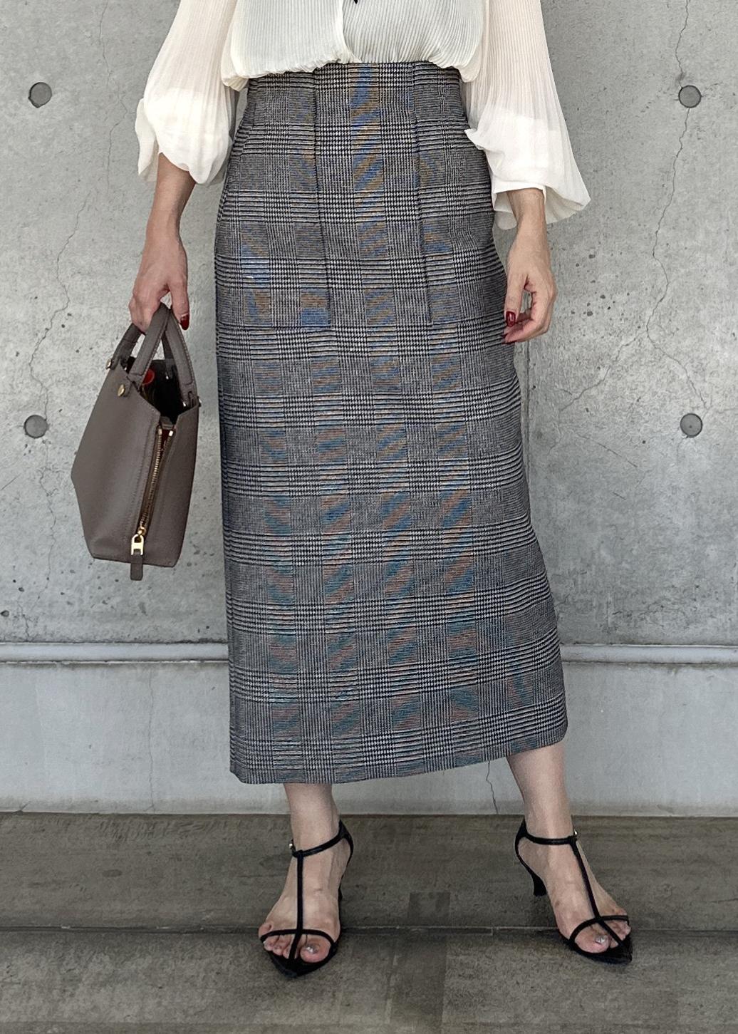 [美人スカート]ウールレーヨンポケット付きタイトスカート(ヘリンボーン/グレンチェック)/セットアップ対応