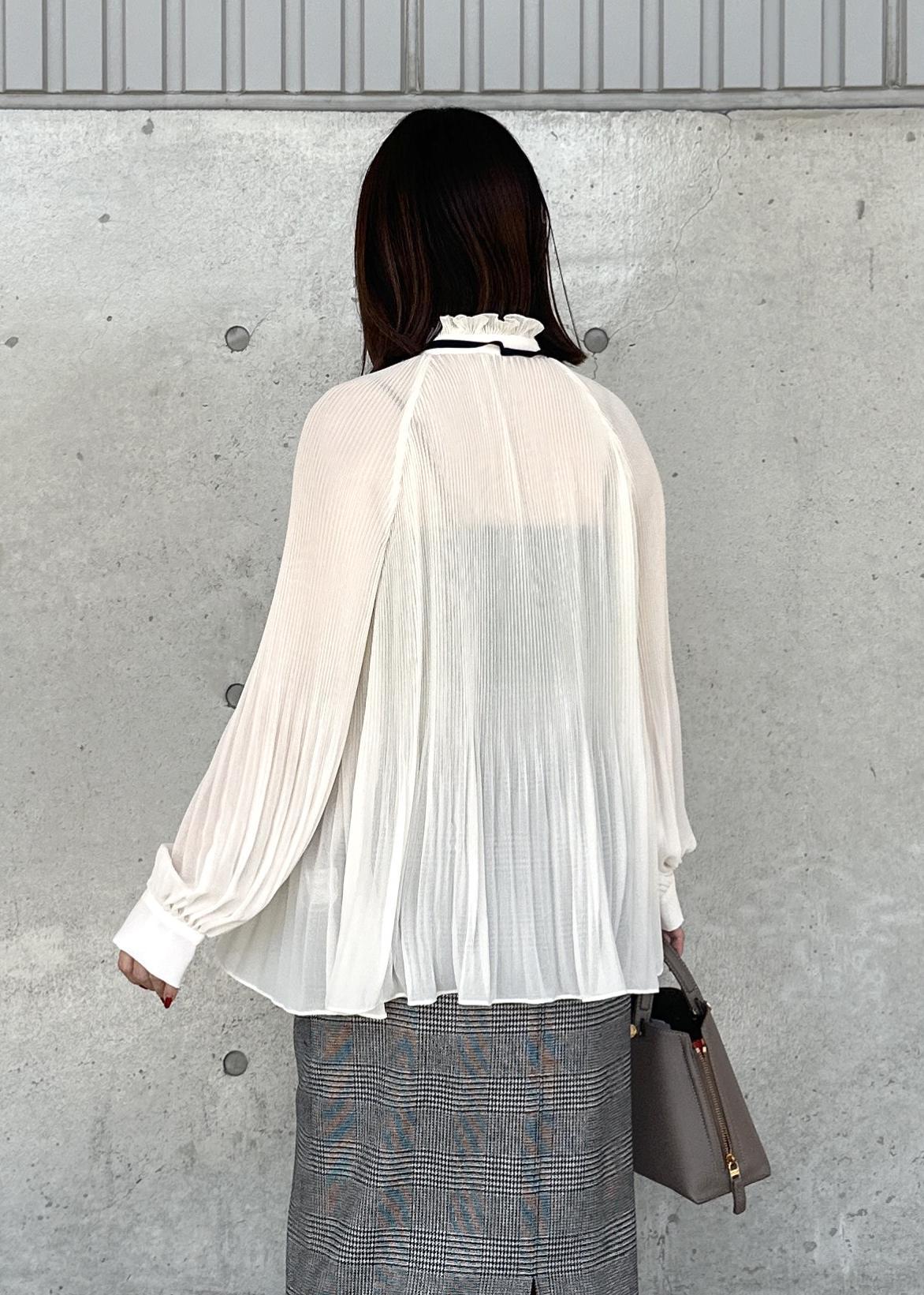程よいシアー感とたっぷりのプリーツで上品なデザインブラウス♪