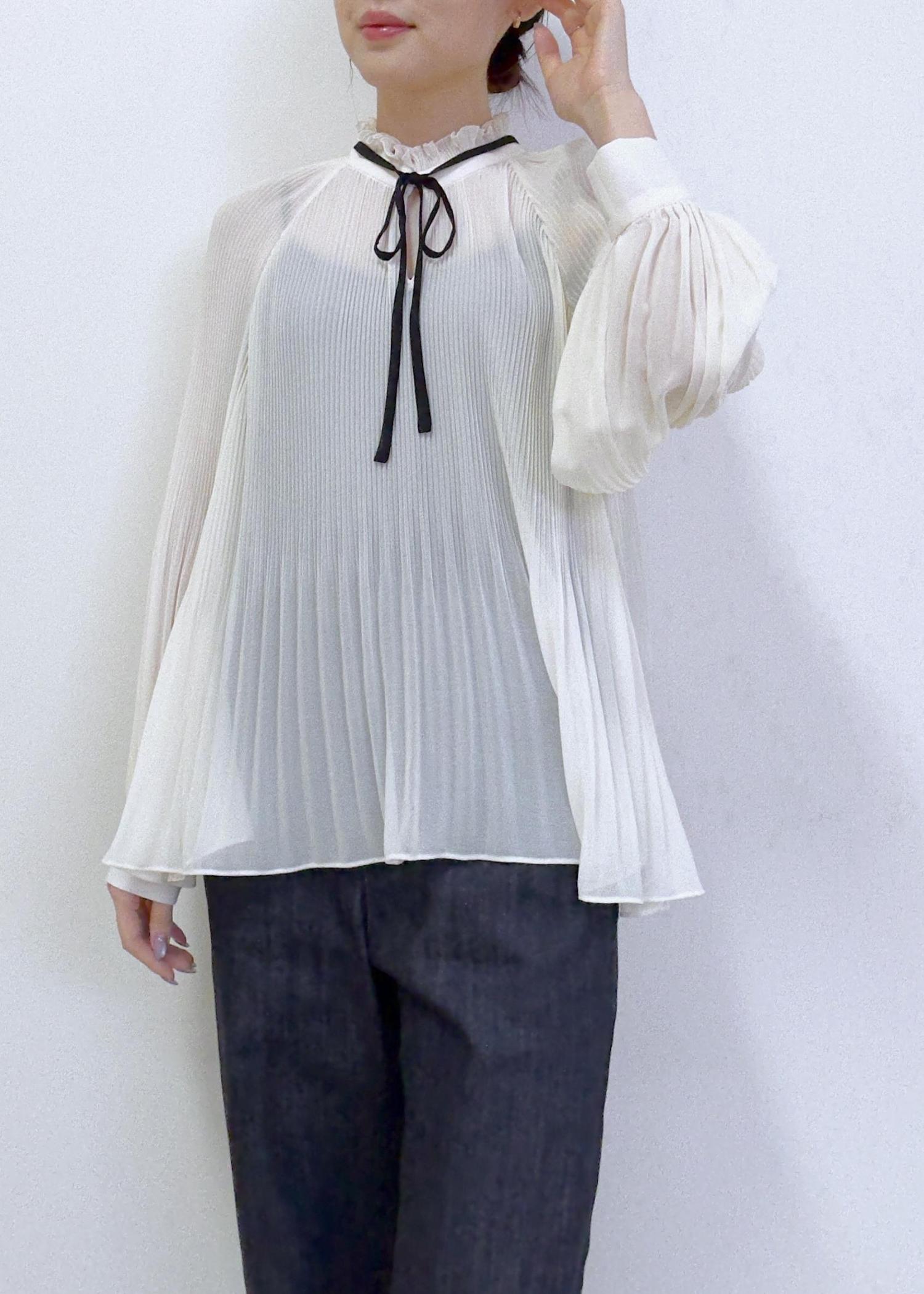 予約ROPÉプリーツデザインブラウス/イージーケアオフホワイト / F¥28,600レビュー身長165cmでFサイズを着用しています。
