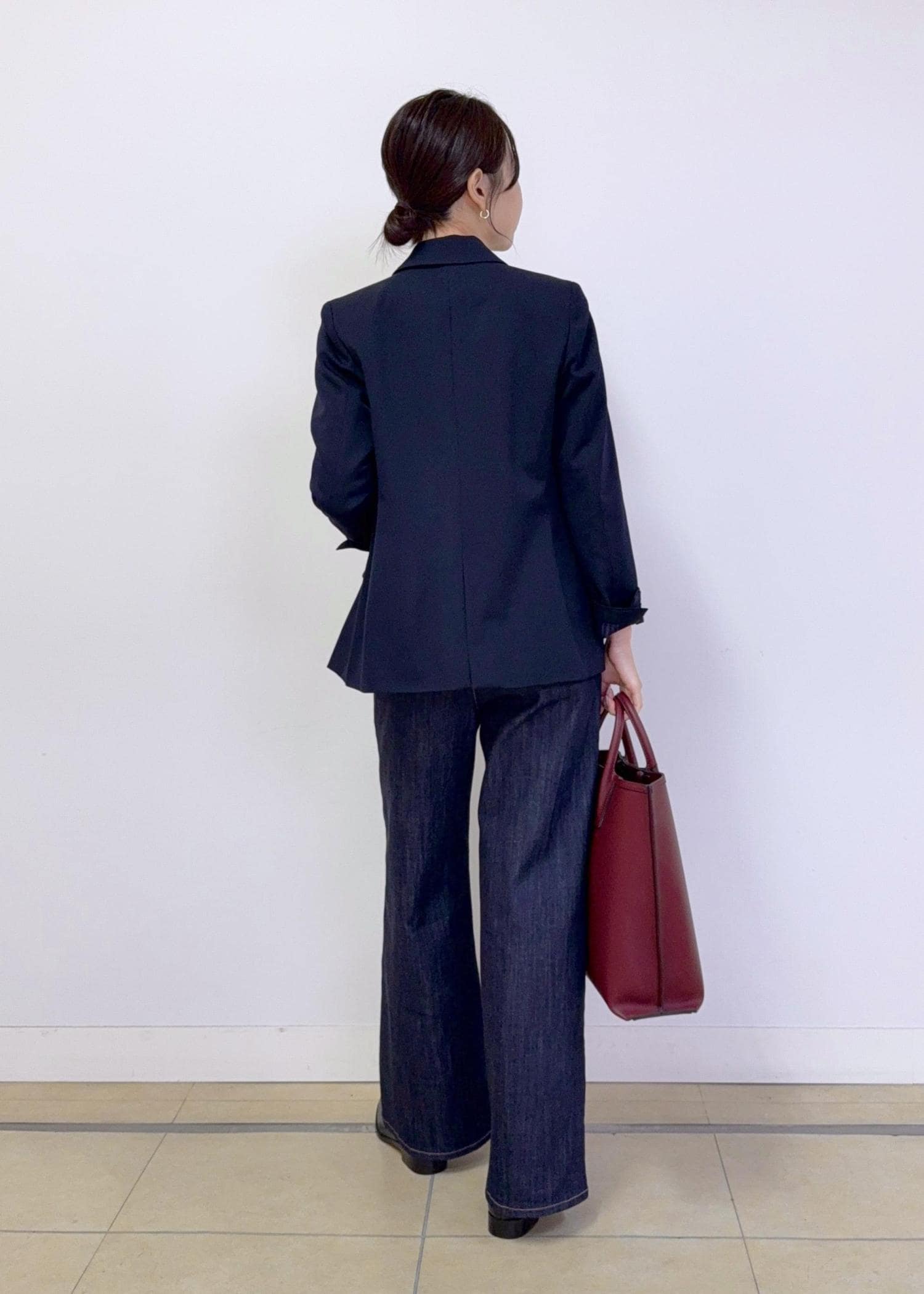 シルエットが綺麗な紺ブレはオンオフ兼用にピッタリです。
