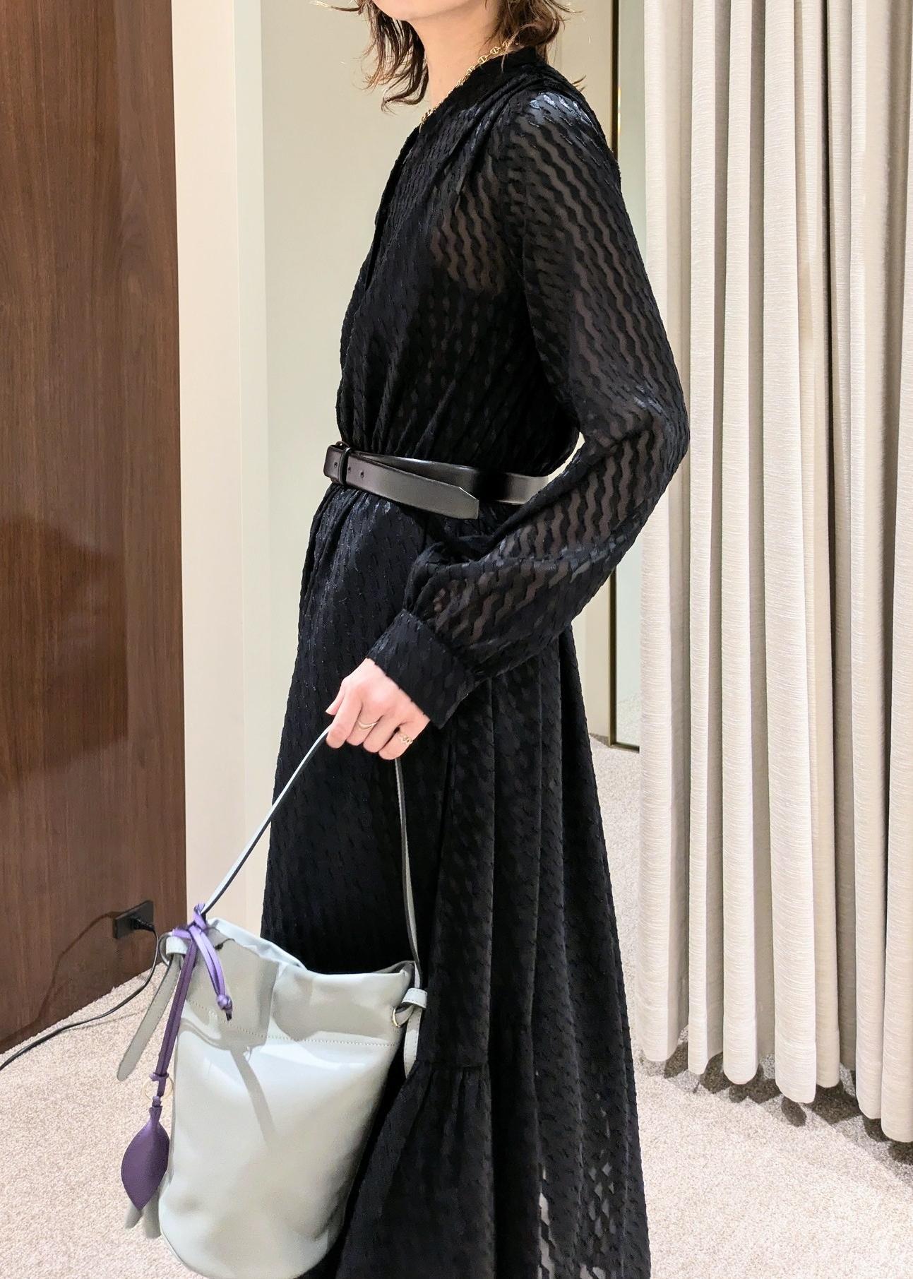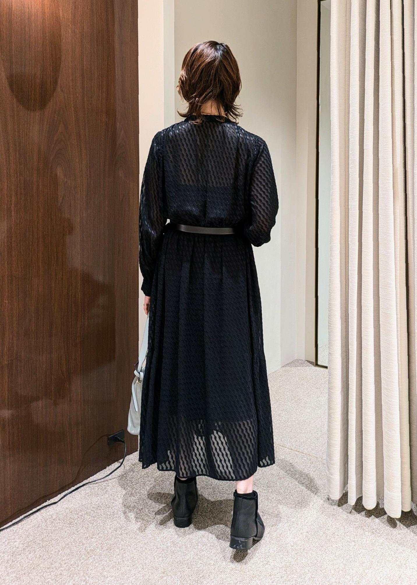 ROPÉ【洗える】ロングスリーブワンピース(ジャガード/リーフプリント)【WEB・一部店舗限定】ブラック / F¥21,560レビュー肌離れが良く、ウエストギャザーならではのとても楽な着心地のワンピース。