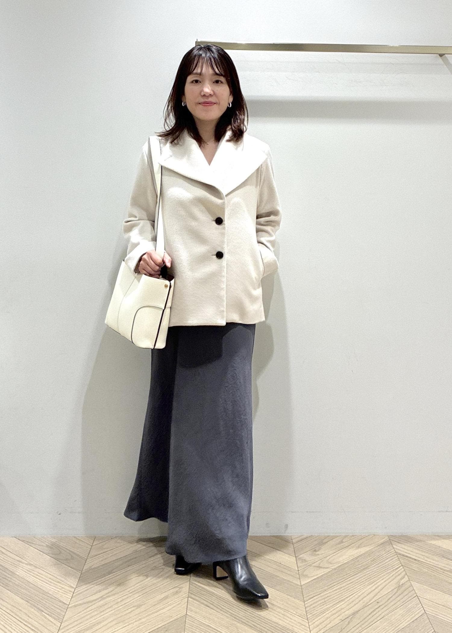 NEW!ROPÉプレミアムカシミヤ ショートコート【25AW】オフホワイト / 38¥53,900レビュー158cm38サイズ着用。