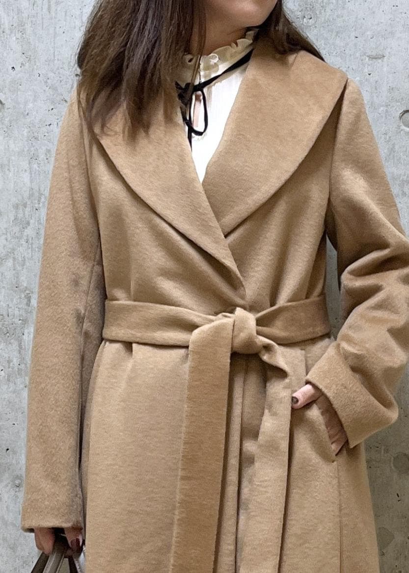 NEW!ROPÉプレミアムカシミヤ ショールカラーコート【25AW】キャメル / 36¥69,300レビュー全体的にゆとりのあるサイズ感で、丈はふくらはぎが隠れるくらいで長すぎず、スカートパンツ共に使いやすい丈です。