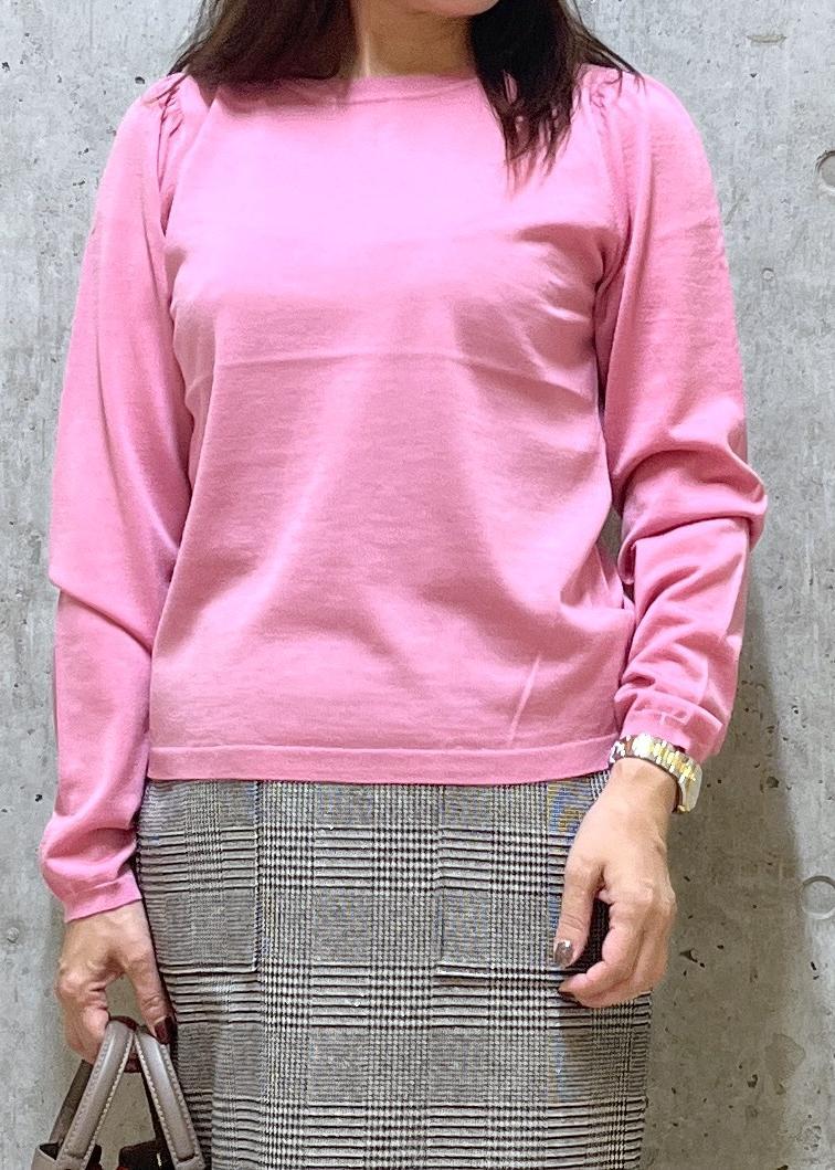 ROPÉ袖ギャザークルーネックニットプルオーバー/イージーケアローズピンク / F¥19,800レビュー程よいゆとりがありますが、ヒップにかかる程の丈と、肩が落ちるデザインではないのでコンパクトに見えるので小柄な方にオススメのシルエットです。