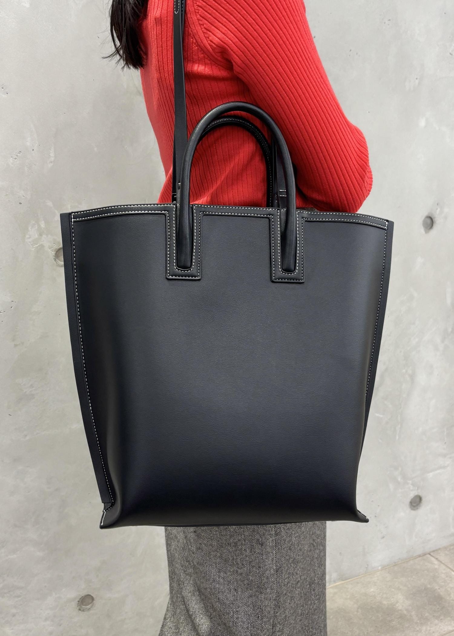 ROPÉ【E'POR】Ree BAG Large【通勤】【A4対応】【25AW】ブラック / F¥18,700レビュー手持ち用のショートハンドルと、肩掛けができるハンドルの2タイプ仕様。肩掛けハンドルは使わない時はスリムに収納できるのが使いやすいです。