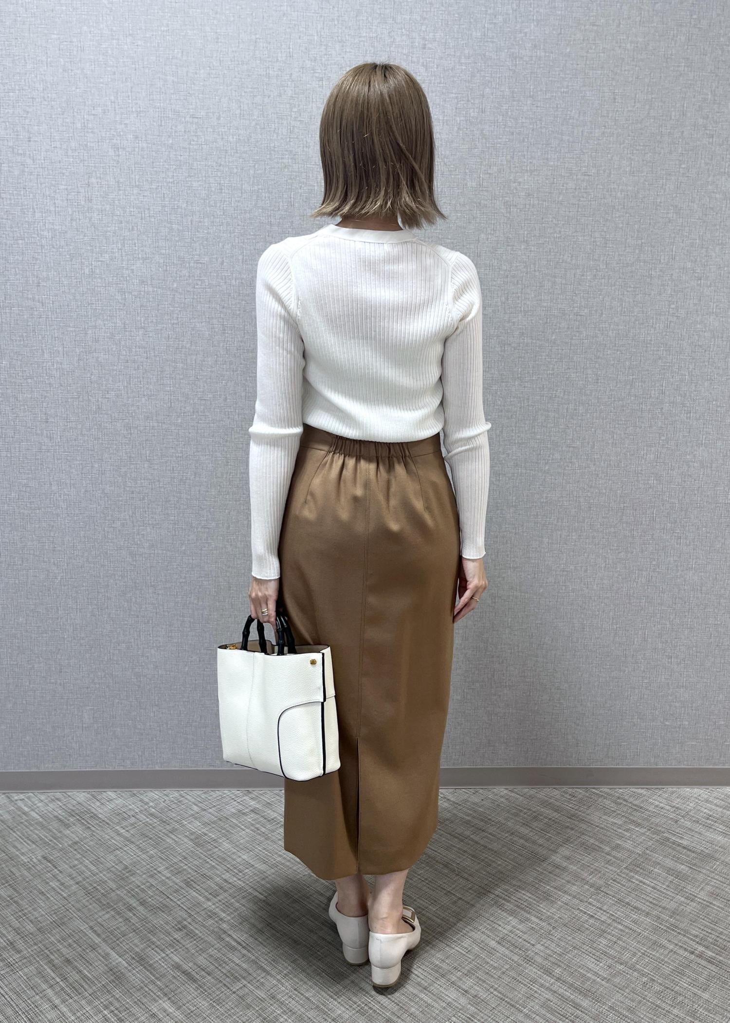 その他ボトムは36サイズを着用することが多いのですが、こちらのポケ付きスカートシリーズは毎度38サイズを着用します。体のラインを拾わず程よいハイウェストで着用できます。 -