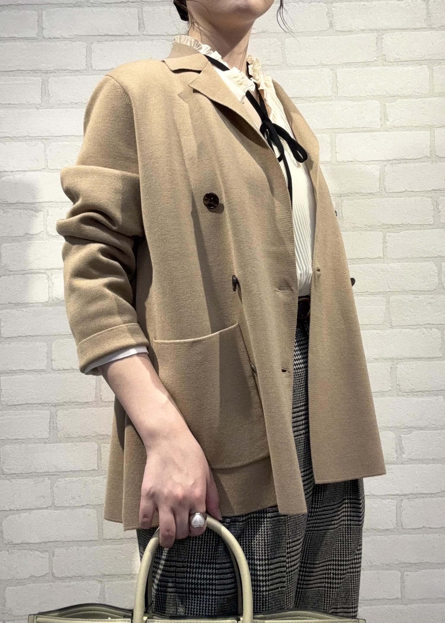 ROPÉミラノリブ ニットダブルジャケット/イージーケアベージュ / 36¥29,260レビュー160㎝36サイズを着用しました。