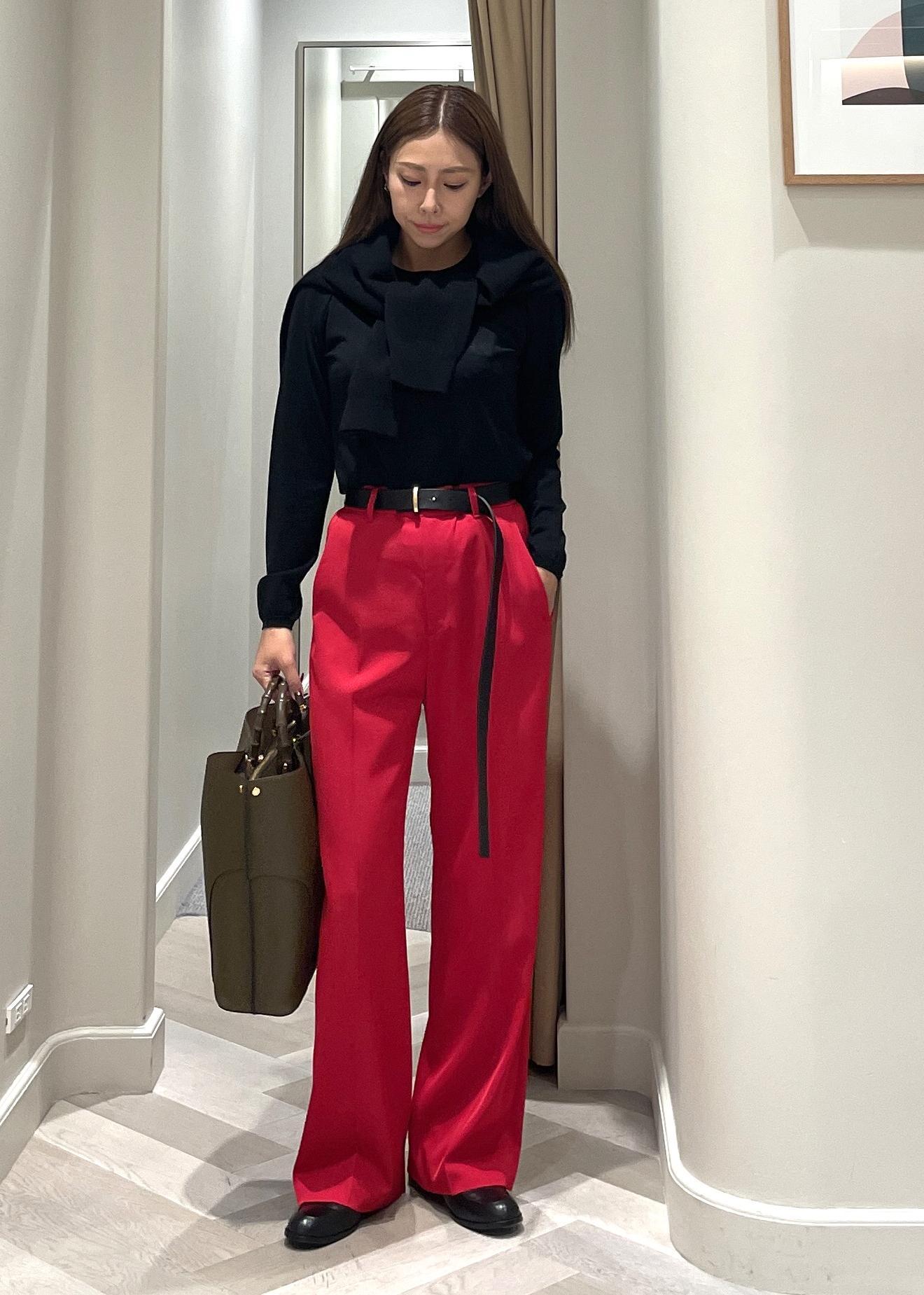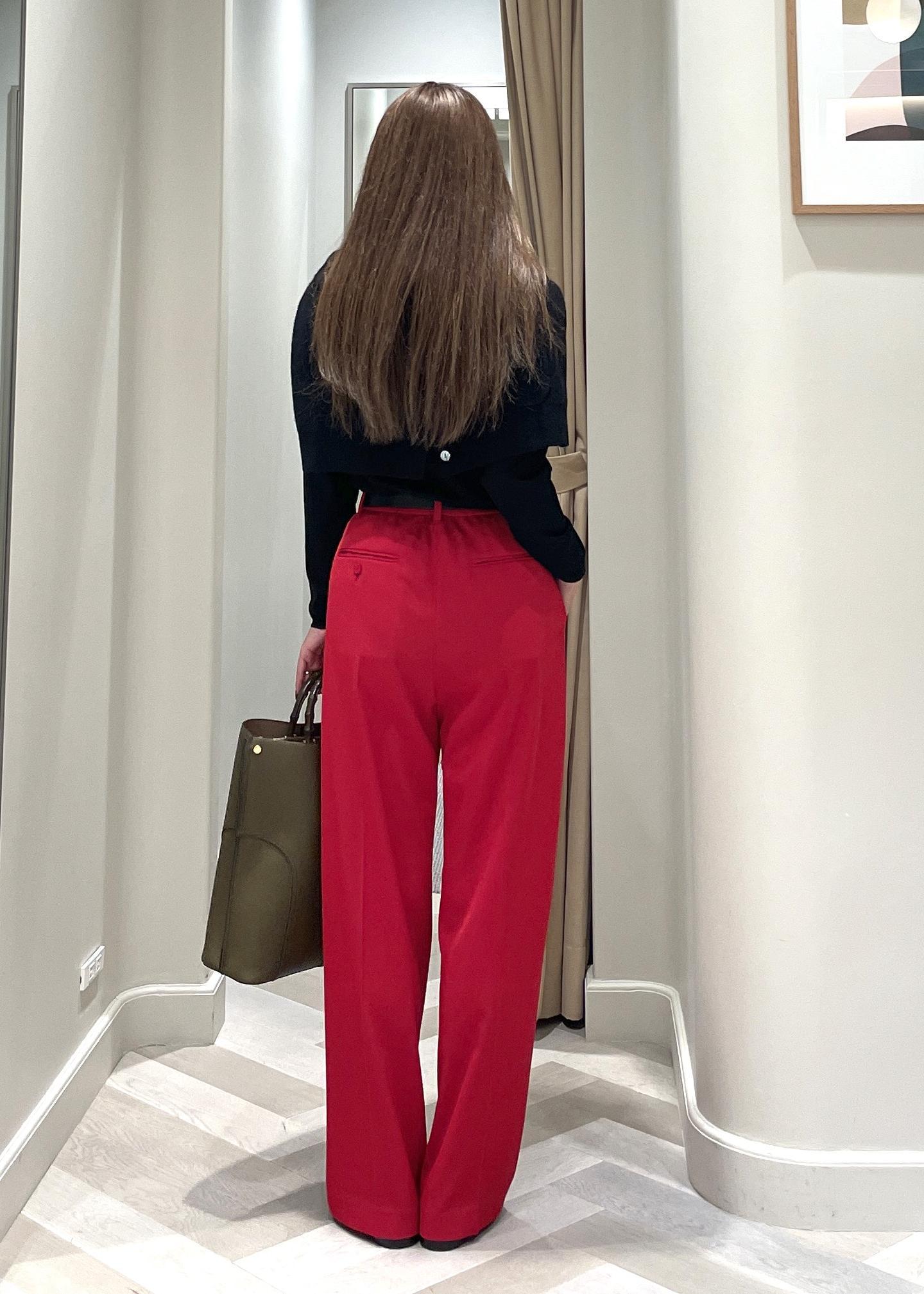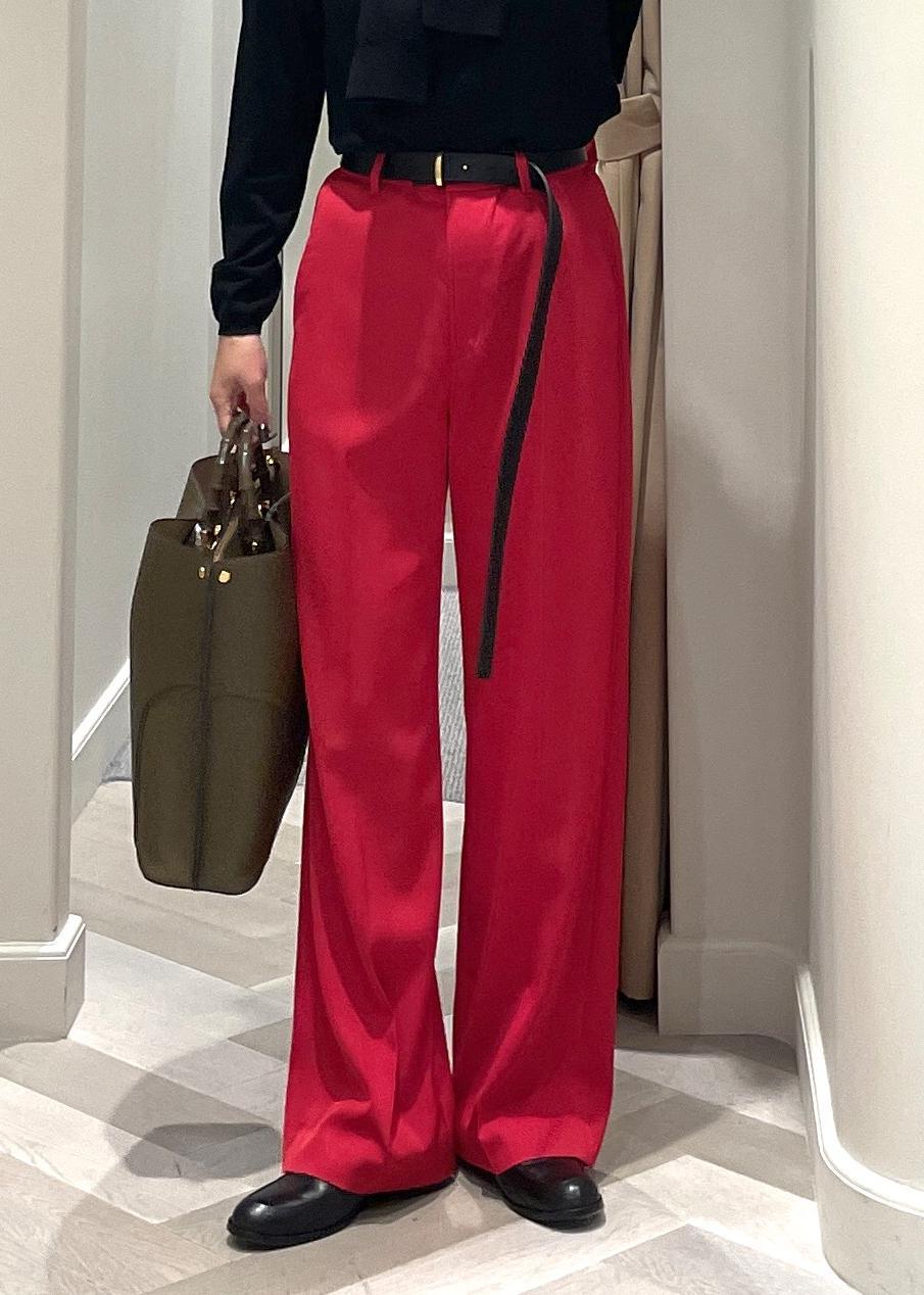 ROPÉセンタープレスパンツ(トリアセテートツイル/デニムライク)レッド / 38¥18,480レビュー普段S〜Mサイズ着用で、38サイズピッタリ。