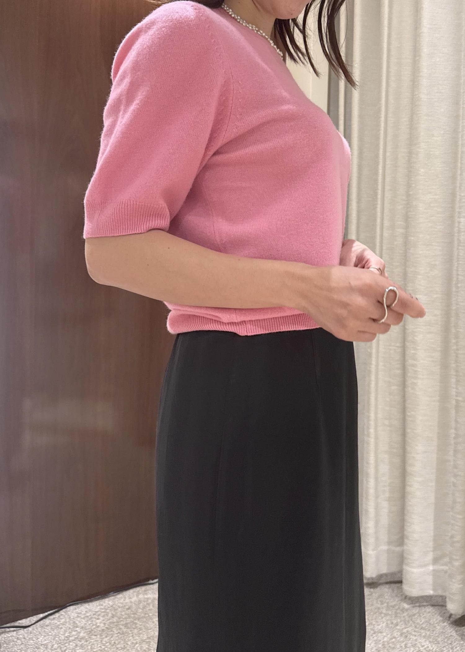 ROPÉウールカシミヤブレンド 5分袖ニットプルオーバー/イージーケアピンク系 / F¥19,800レビューカシミヤ混なので軽くて柔らかく温かい素材。