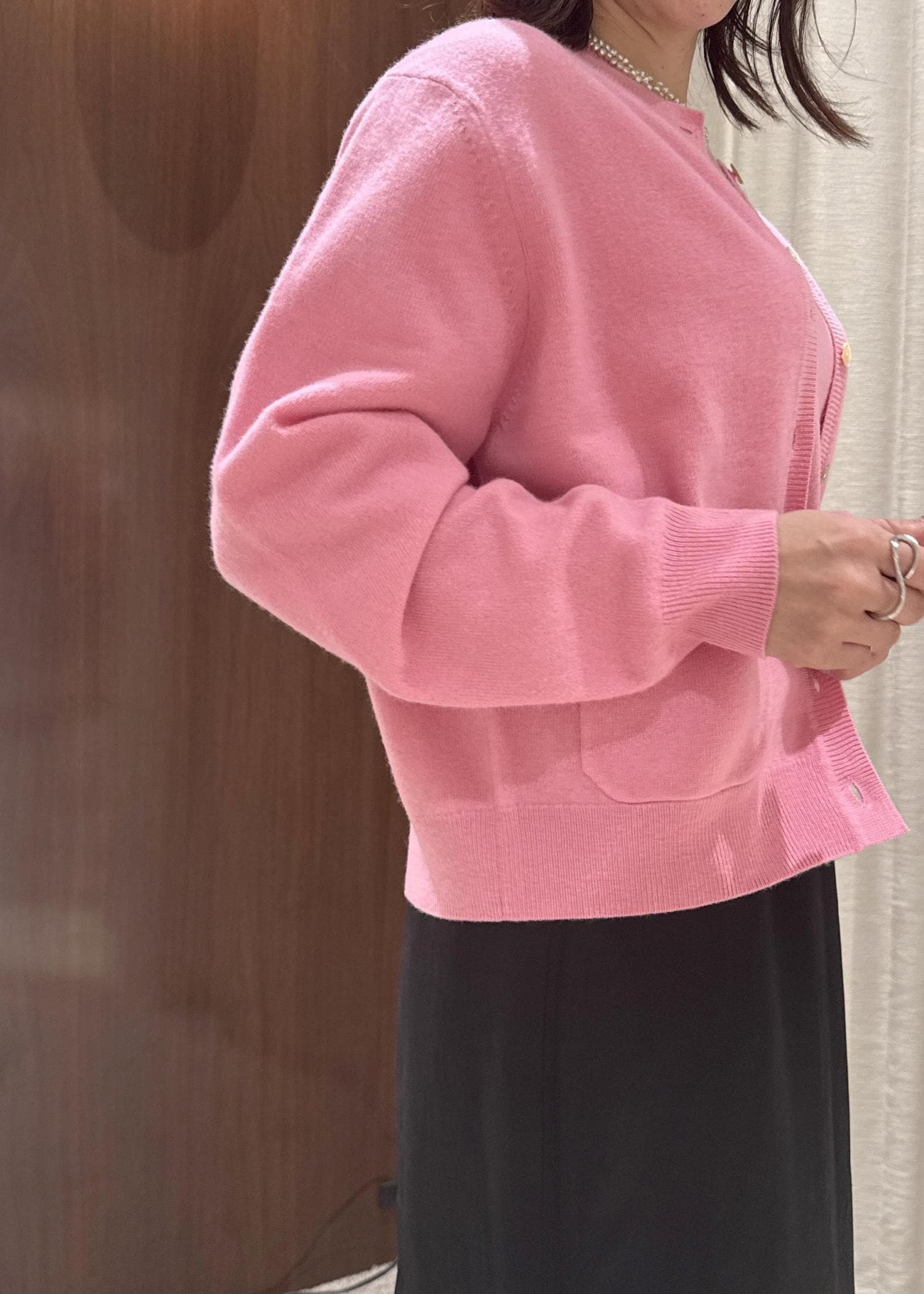 ROPÉ【一部WEB限定】ウールカシミヤ ブレンドニットカーディガン/イージーケアピンク系 / F¥27,500レビュー着丈はコンパクトですが、ゆったりしたサイズ感なのでレイヤードもしやすく、ボタンを閉めてプルオーバーとして着用しても可愛いです。