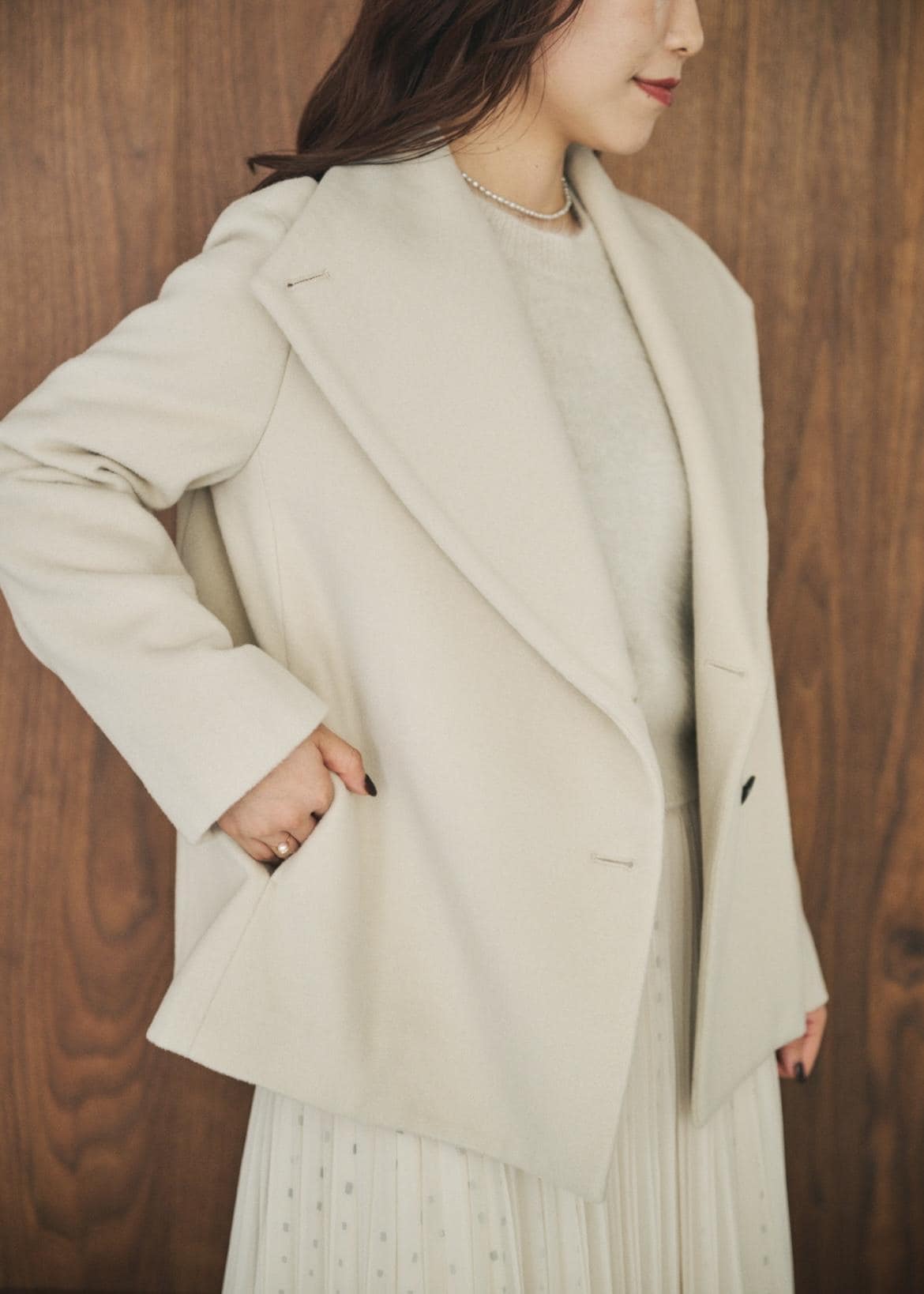 NEW!ROPÉプレミアムカシミヤ ショートコート【25AW】オフホワイト / 38¥53,900レビュー着丈はお尻がほとんど隠れる丈感で安心感◎