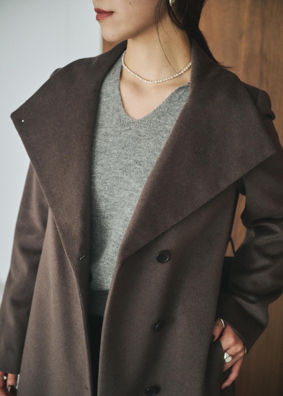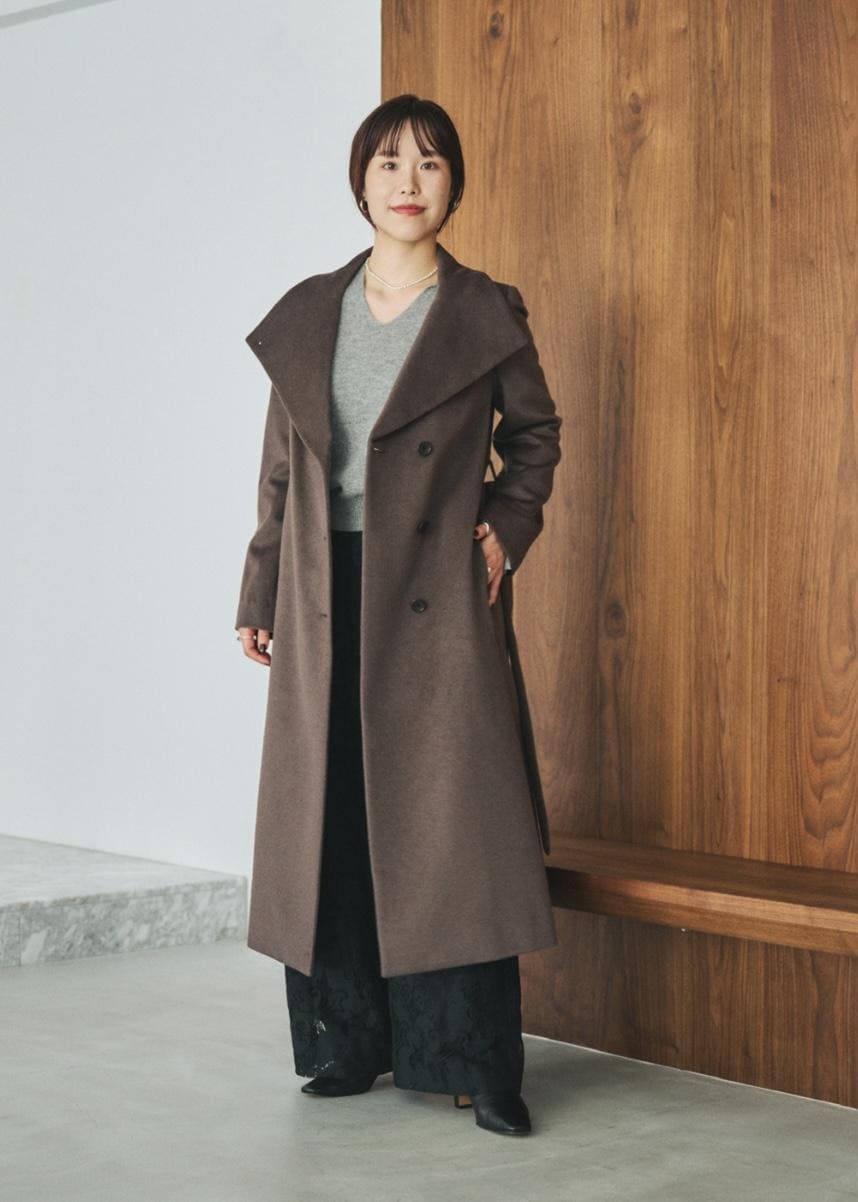NEW!ROPÉプレミアムカシミヤ ロングコート【逸品・マルチWAY】【25AW】ダークブラウン / 38¥59,400レビュー着丈はふくらはぎの半分くらいまでのミモレ丈。