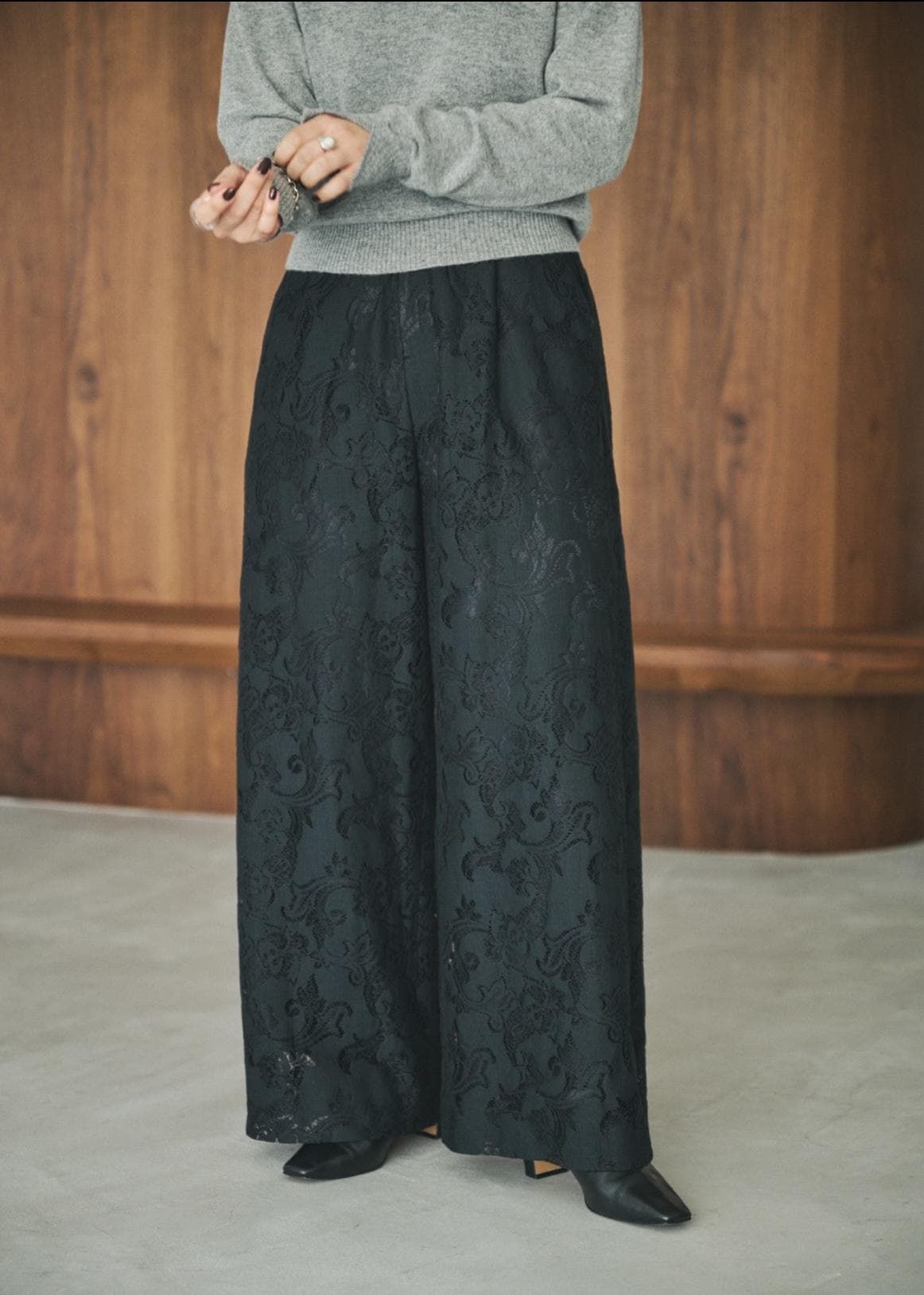 ROPÉフラワーレースイージーパンツブラック / F¥29,700レビュー着丈はかかとにかかるくらいの丈感で地面スレスレだったためヒールは必須。
