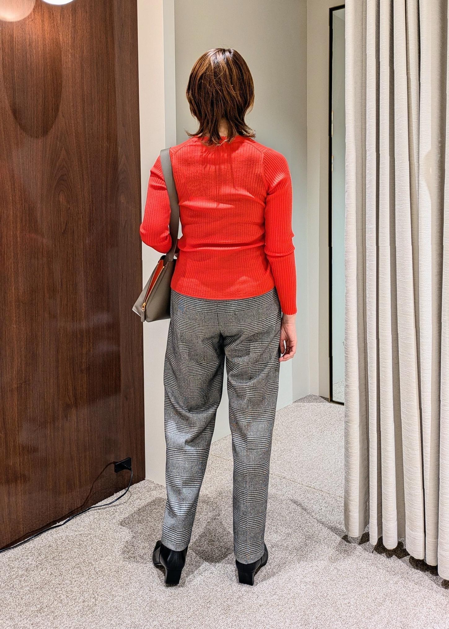 ゆるやかなテーパードで、肌離れが良くシルエットが綺麗です。