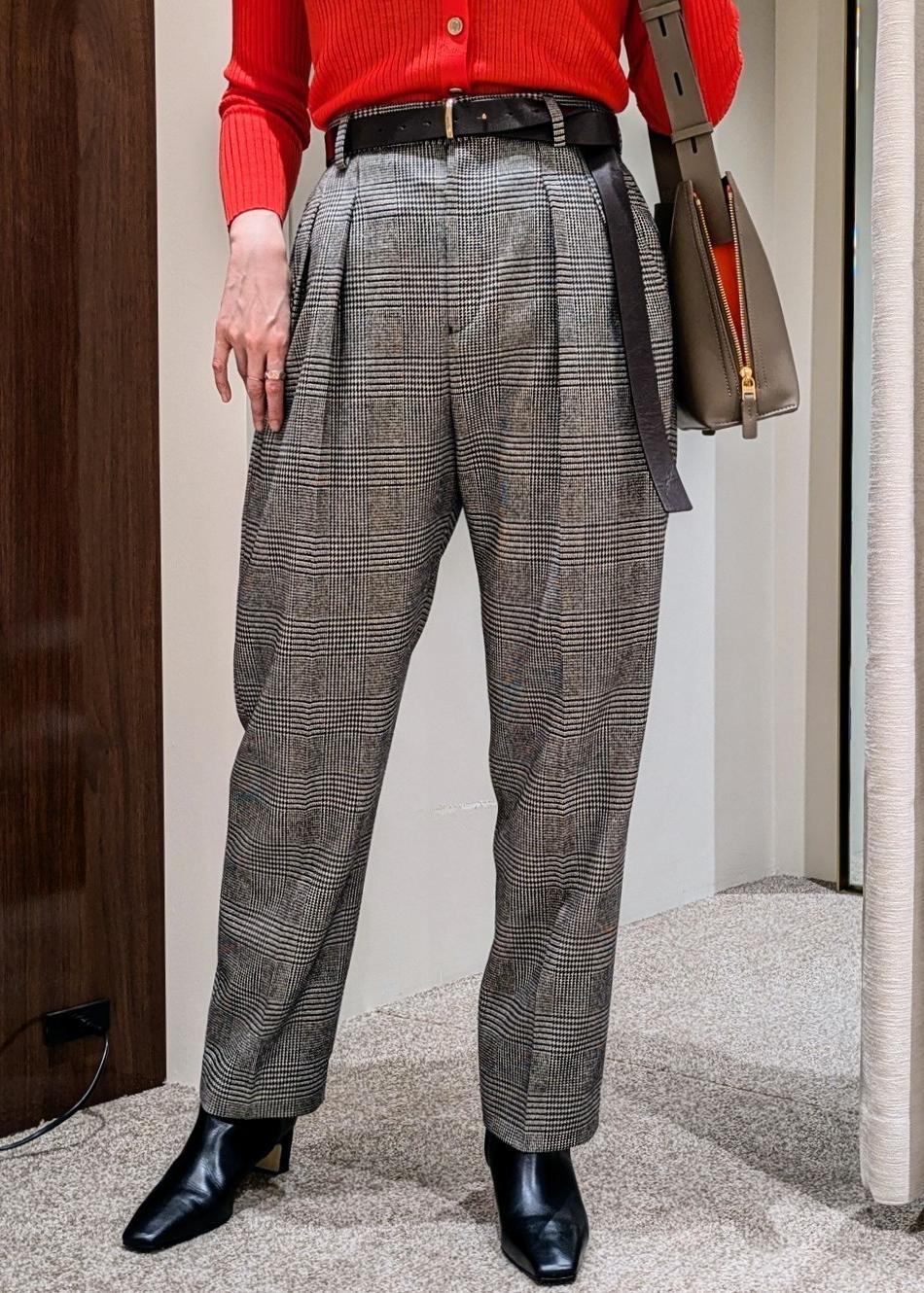 ROPÉウールレーヨンクラシック2タックパンツ(ヘリンボーン/グレンチェック)/セットアップ対応ブラック系 / 38¥27,500レビュー身長167cmで38サイズ着用。