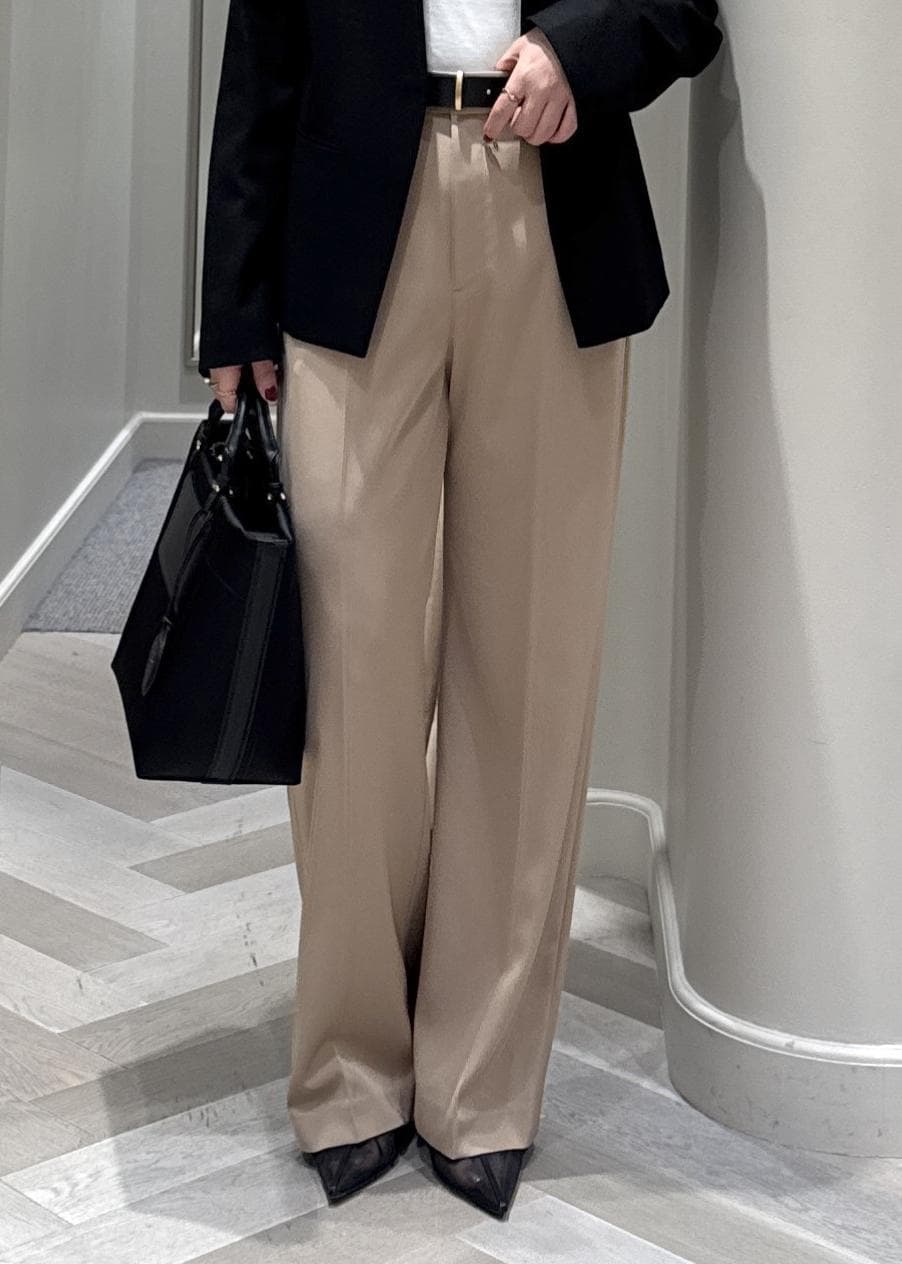 ROPÉセンタープレスパンツ(トリアセテートツイル/デニムライク)ベージュ / 38¥18,480レビューさらっとした生地感でオチ感があります。