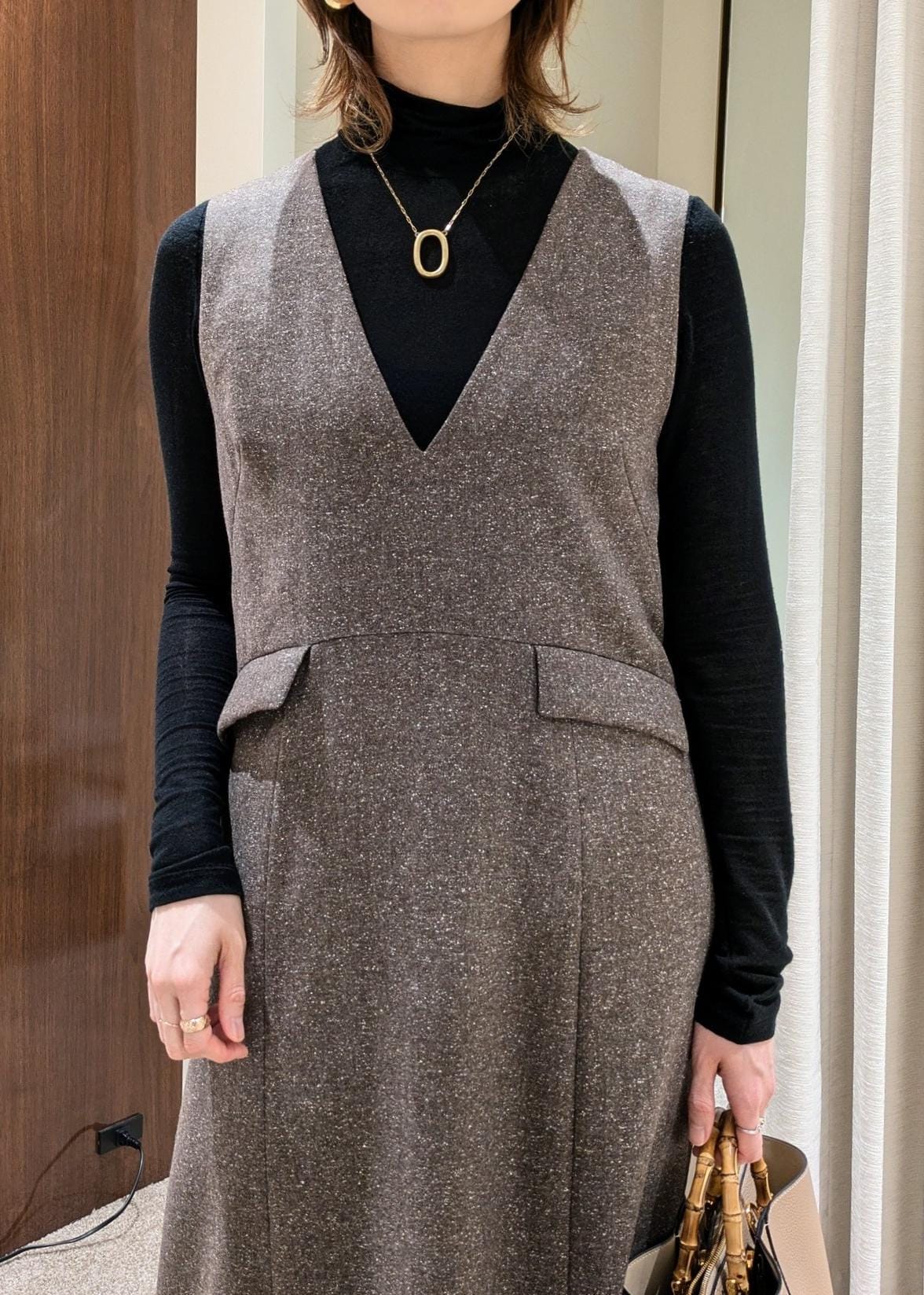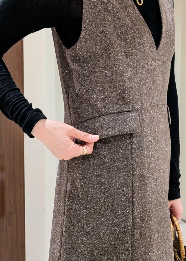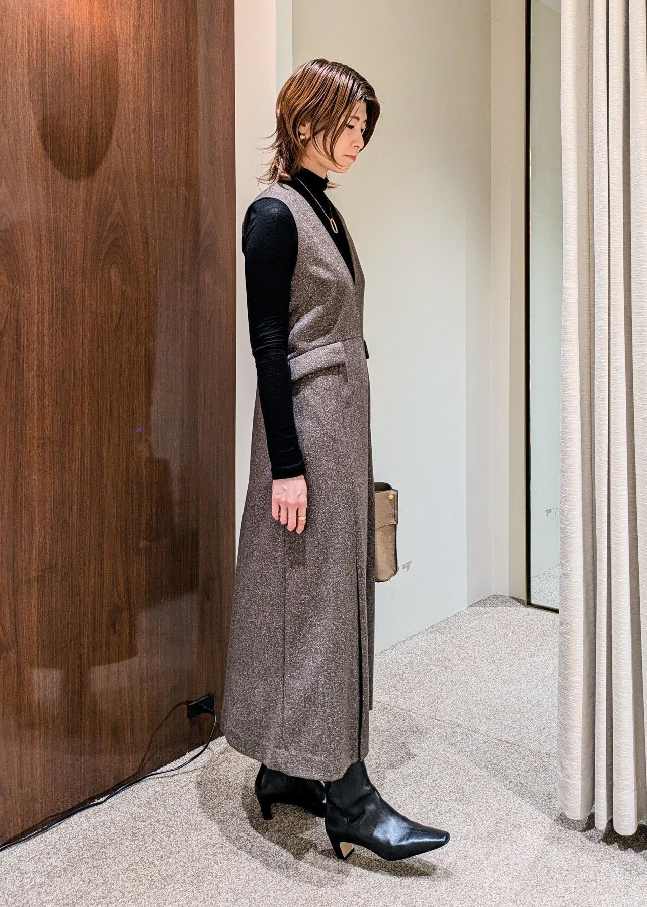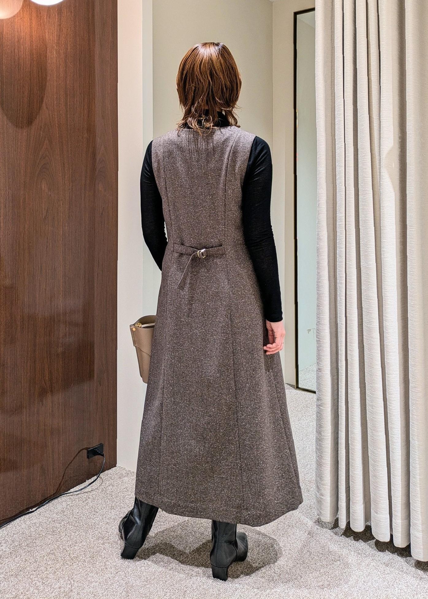 ROPÉスノーツイードジャンパースカート/イージーケアブラウン / F¥30,800レビュー深めなVネックで小顔効果もあり、ウエストの切替え位置も高めなので、全体的にシャープな印象に見せてくれるジャンパースカート。