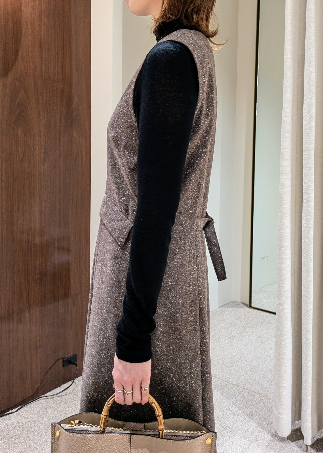 後ろのベルトでウエストラインを微調整出来るところが嬉しいポイントで、その日の気分に合わせて、ゆるシルエットにも身体にフィットさせたシルエットにも変えられます。