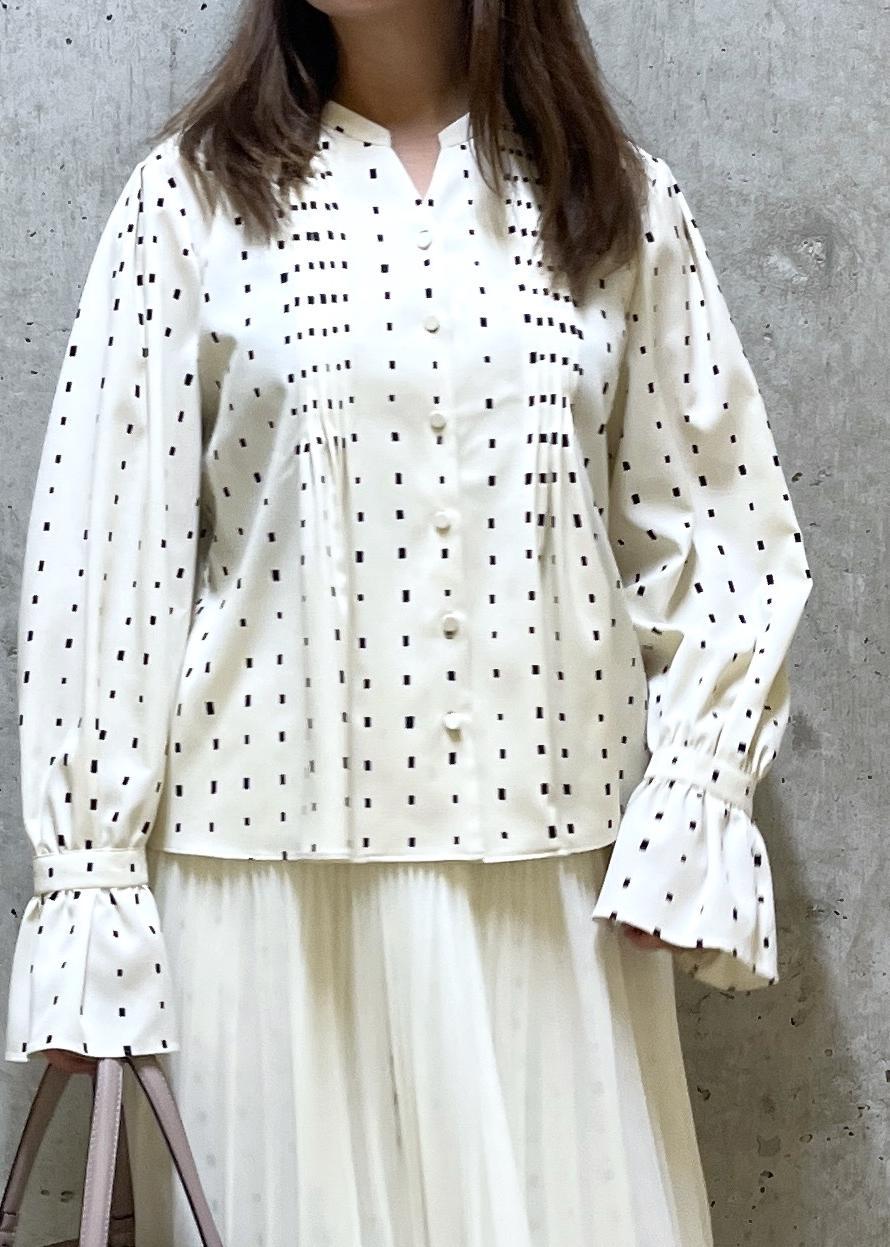 ROPÉスクエアドットプリントブラウス/イージーケアキナリ / F¥36,300レビューギャザーが入ったふんわりとしたシルエットで、全体的にゆとりがある為、身体のラインを拾わず体型カバーしてくれます。