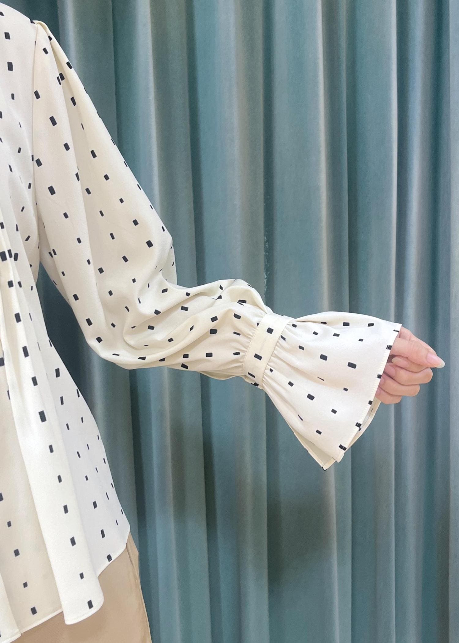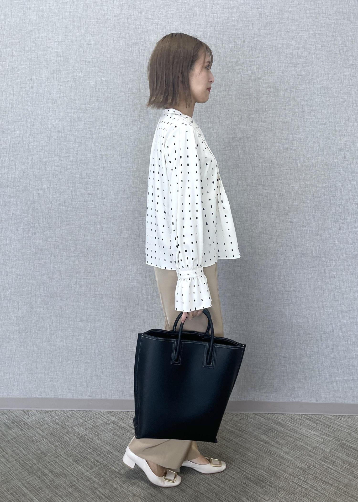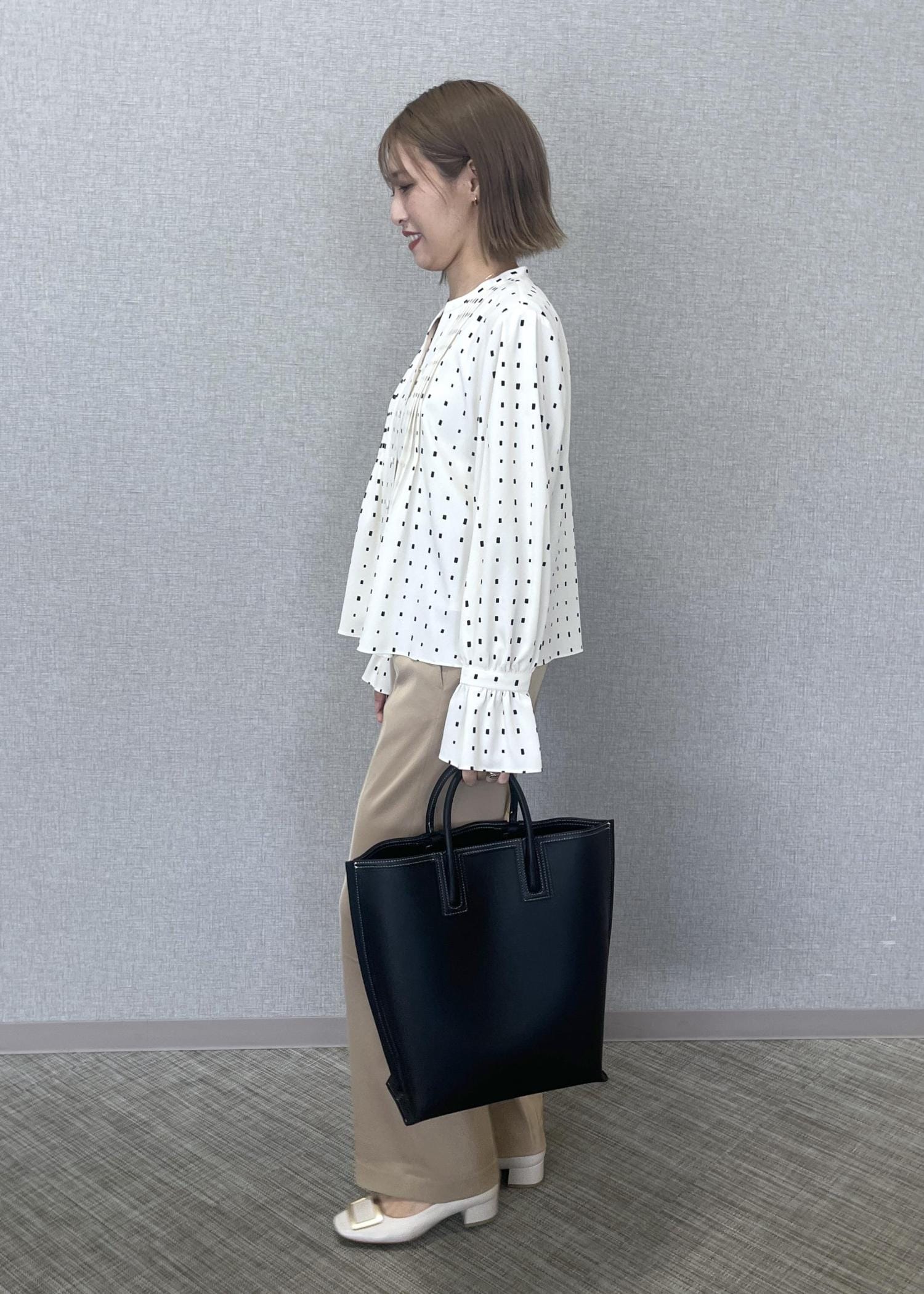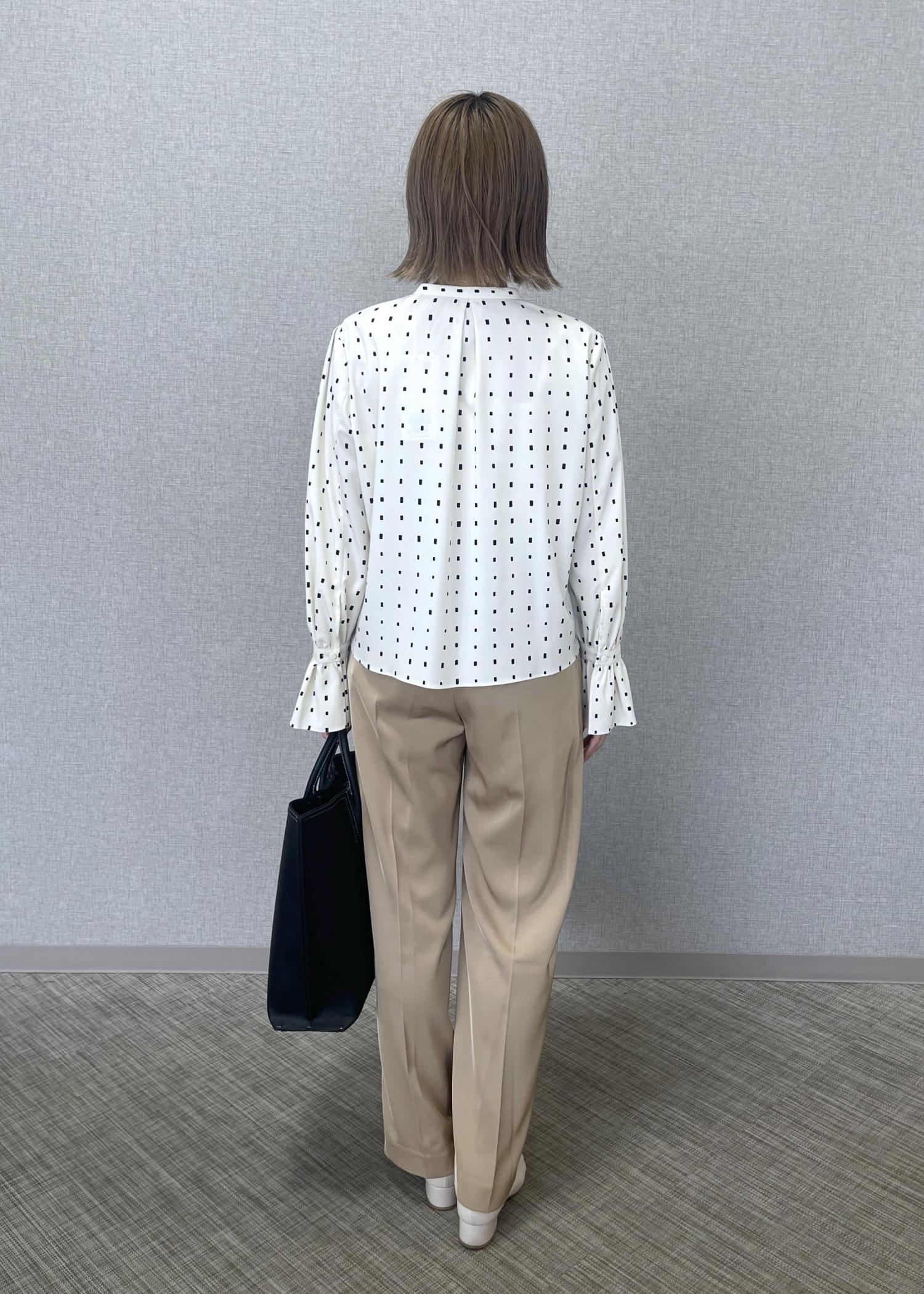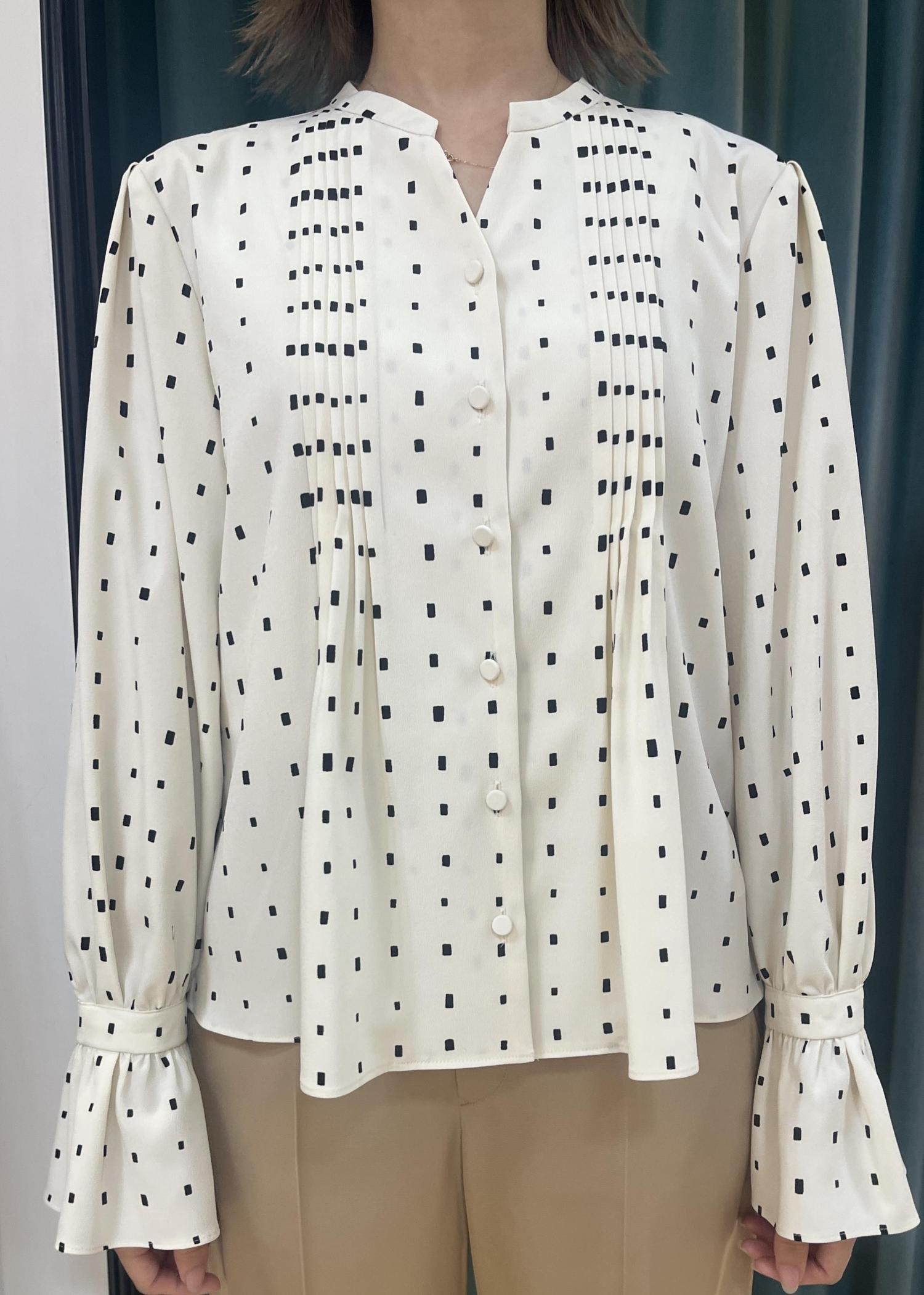 ROPÉスクエアドットプリントブラウス/イージーケアキナリ / F¥36,300レビュー硬すぎずしっかりした生地で、フリルやプリーツなどデザイン性が高いアイテムです。
