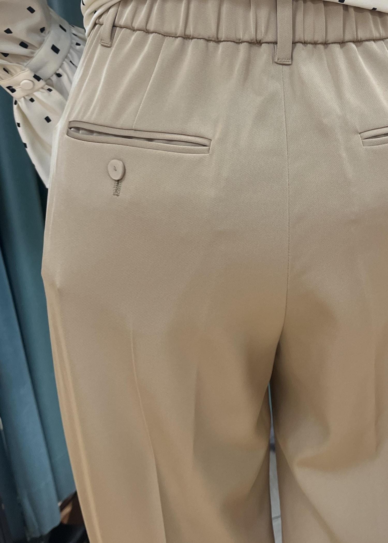 ROPÉセンタープレスパンツ(トリアセテートツイル/デニムライク)ベージュ / 36¥18,480レビュー36サイズ着用でジャストサイズ、丈もカットなしでOKでした。