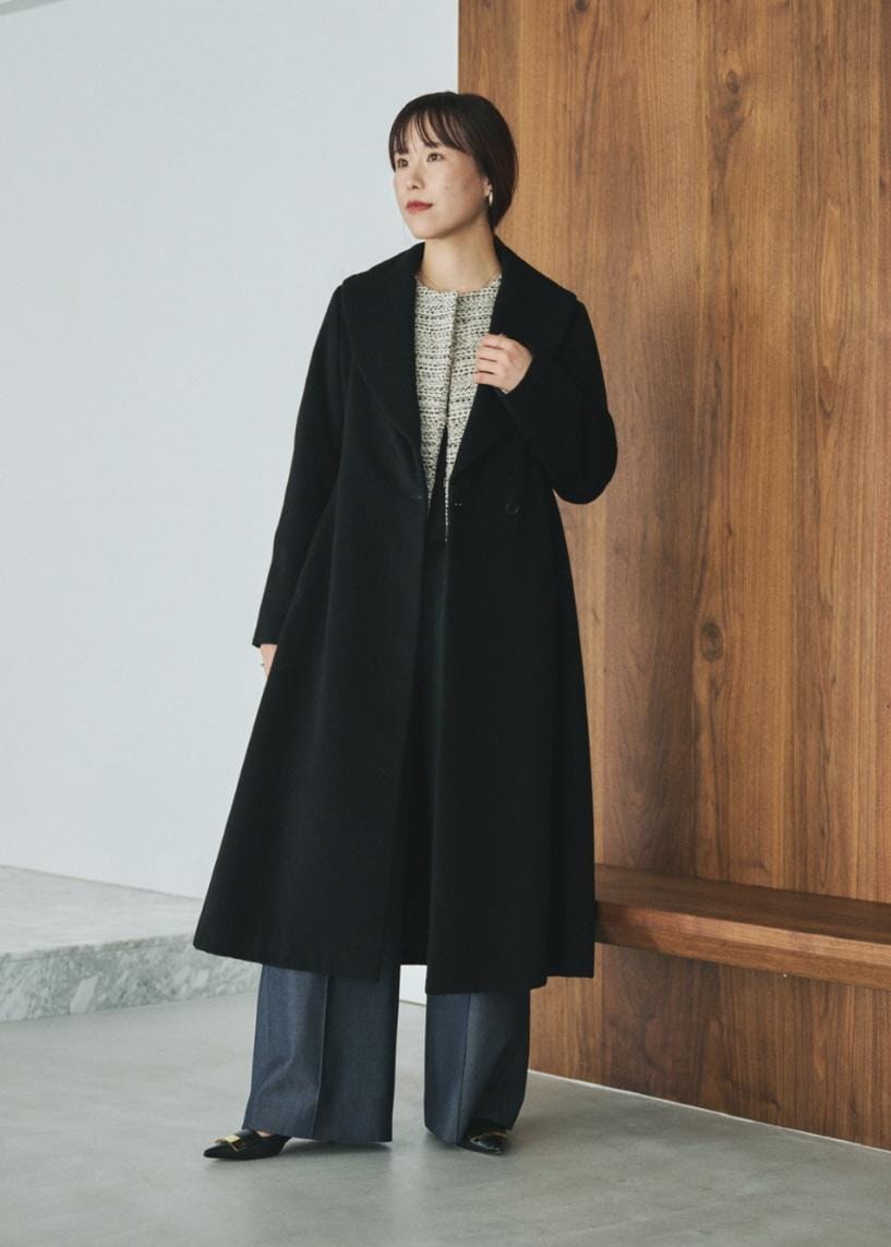 NEW!ROPÉプレミアムカシミヤ ショールカラーコート【25AW】ブラック / 38¥69,300レビュー着丈はふくらはぎ半分くらいまでで長すぎない丈感。