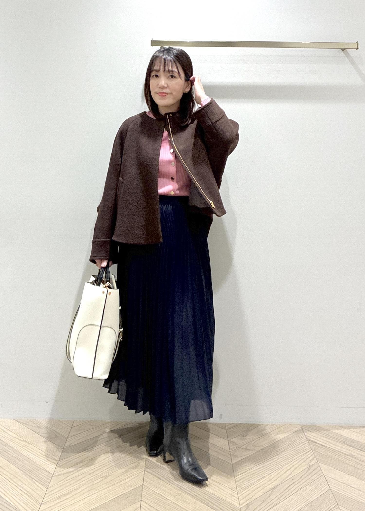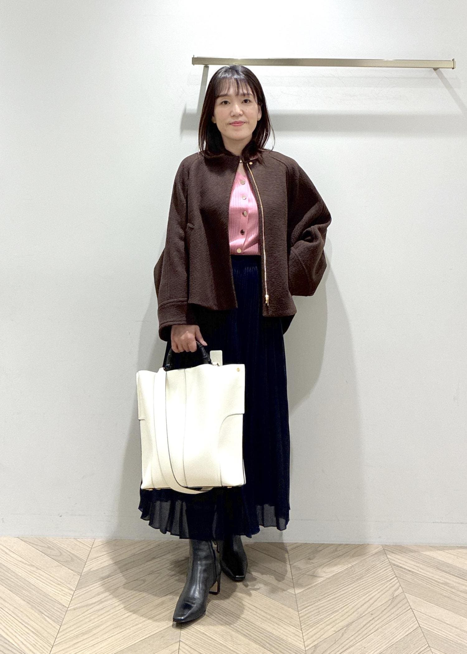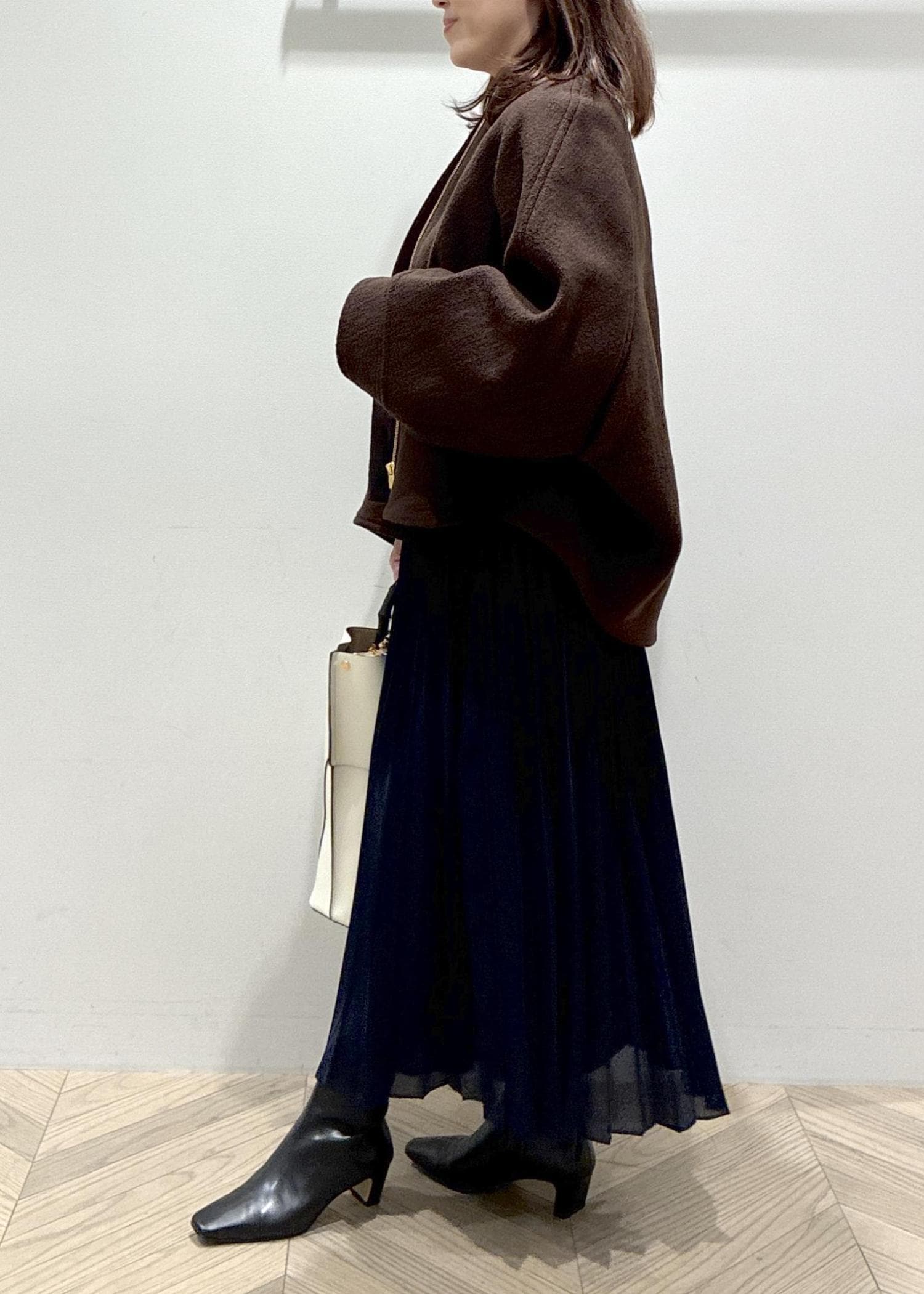 ウール100%ですが、チクチクせず柔らかい素材でスッキリと身体に馴染むシルエットが女性らしく上品です。 -