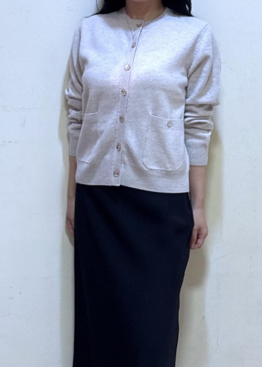 ROPÉ【一部WEB限定】ウールカシミヤ ブレンドニットカーディガン/イージーケアベージュ系 / F¥27,500レビュー身長152cm Fサイズ着用