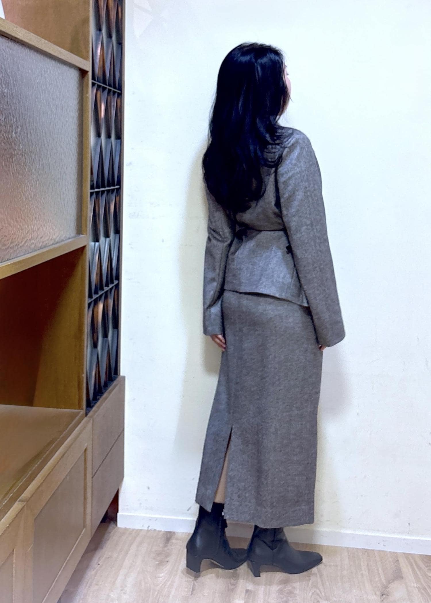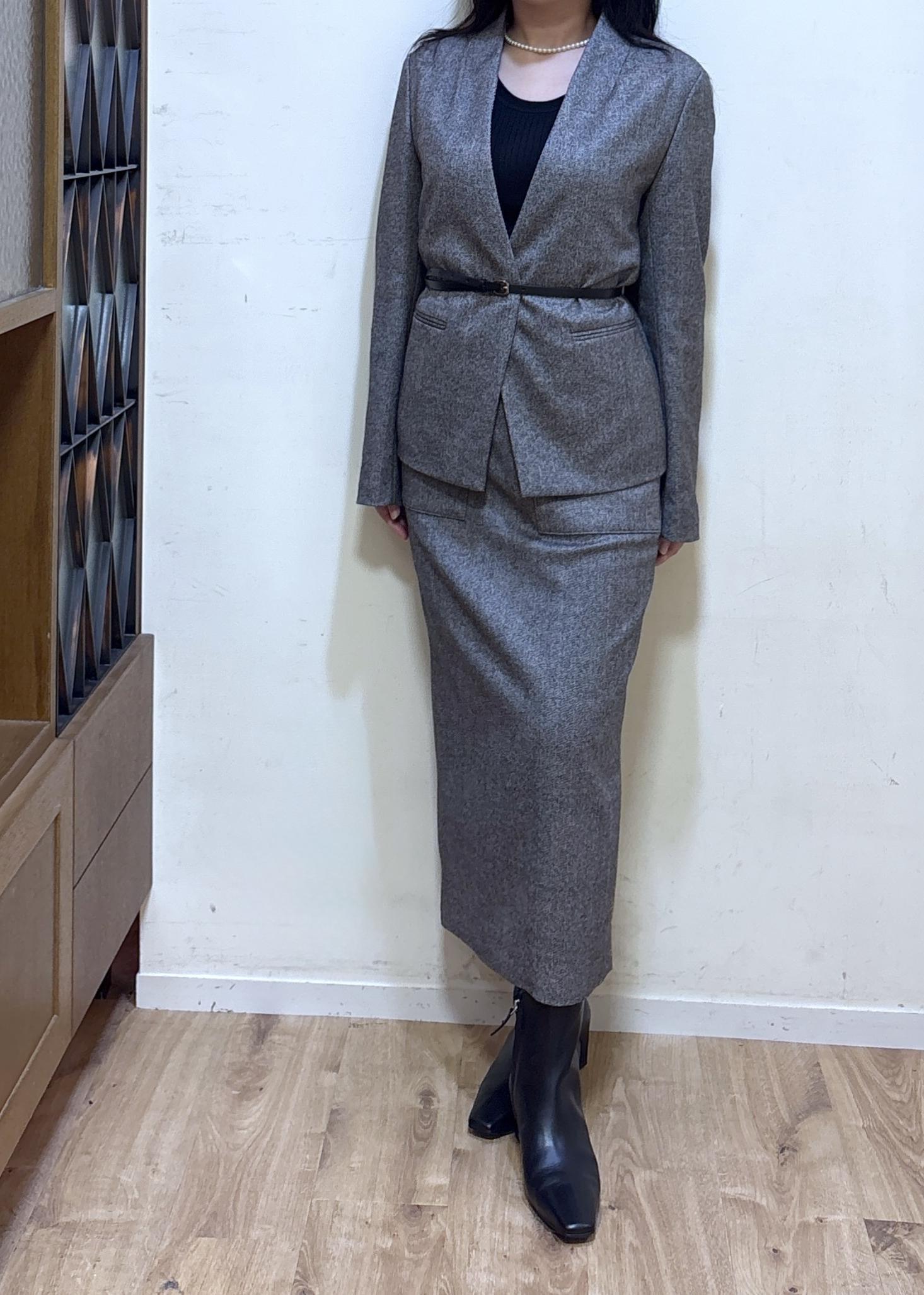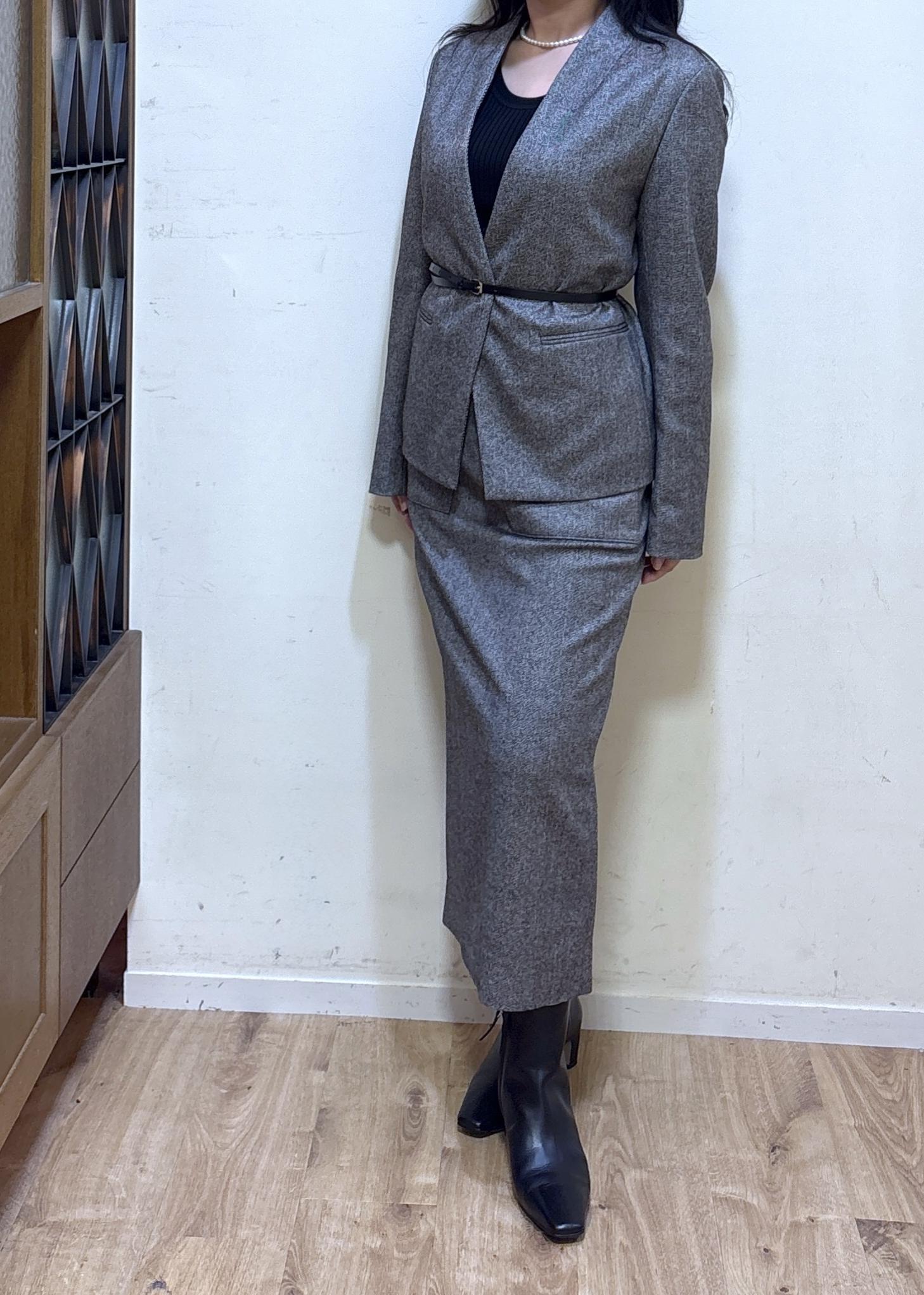 ウール混ノーカラージャケット(無地/ヘリンボーン)/セットアップ対応